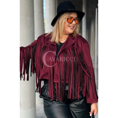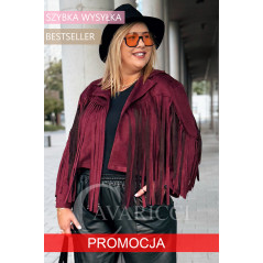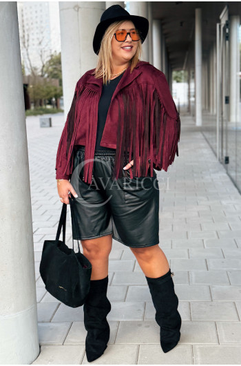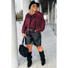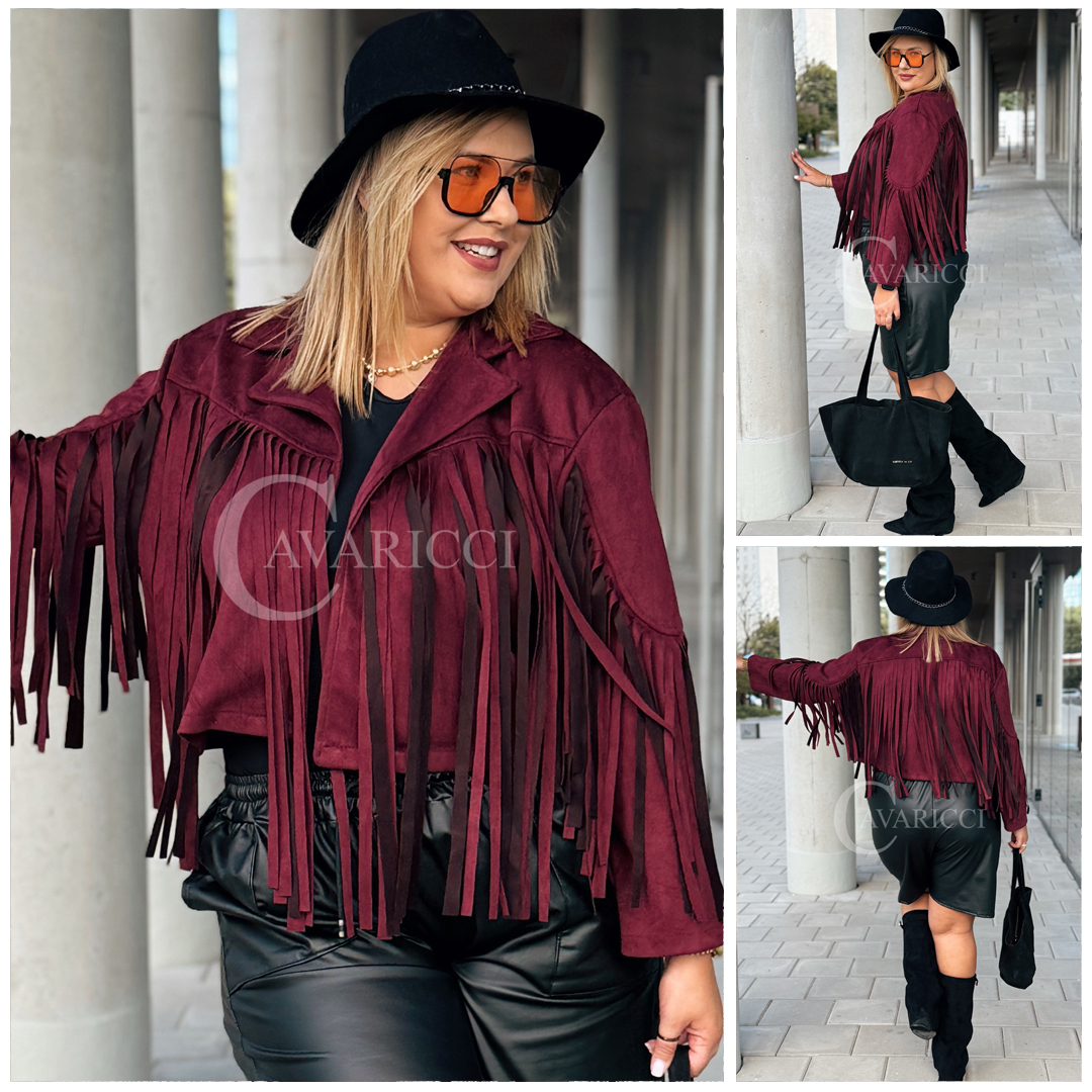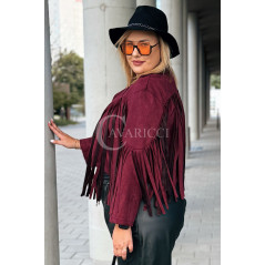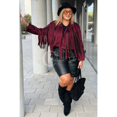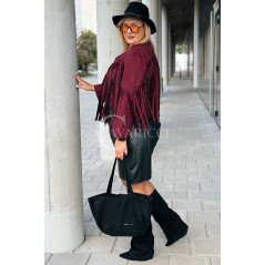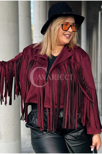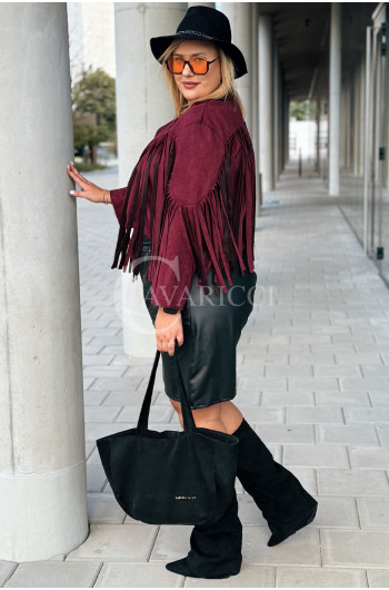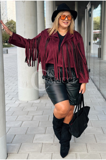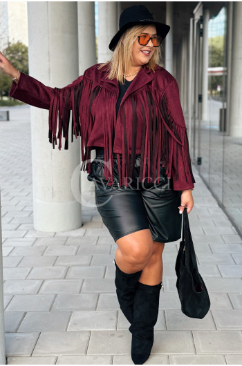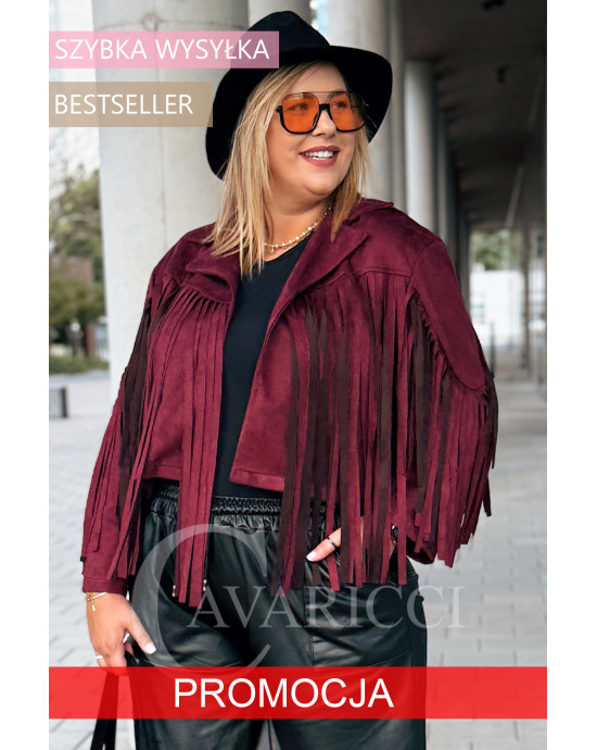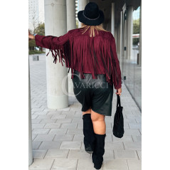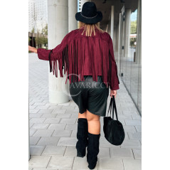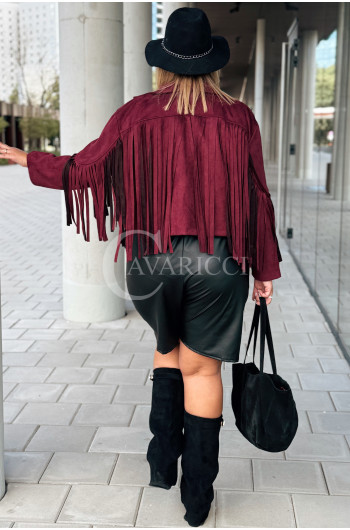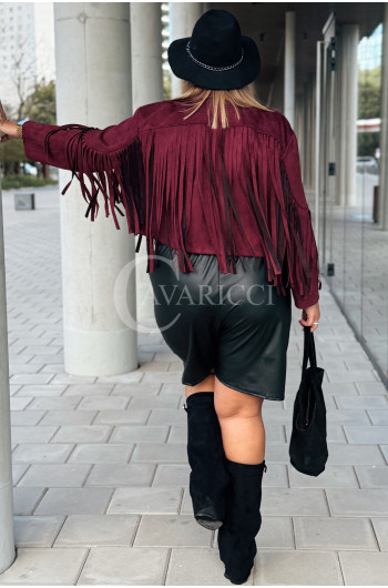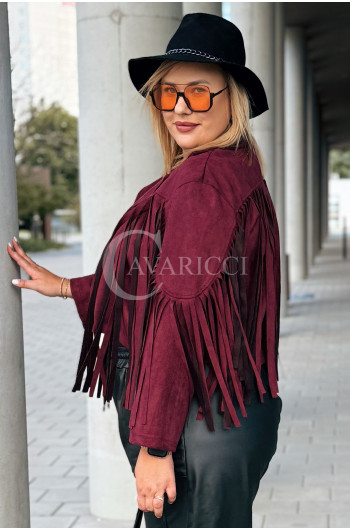 FORLI - Zamszowa boho kurteczka z frędzlami w kolorze bordowym