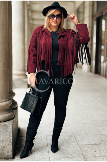 FORLI - Zamszowa boho kurteczka z frędzlami w kolorze bordowym