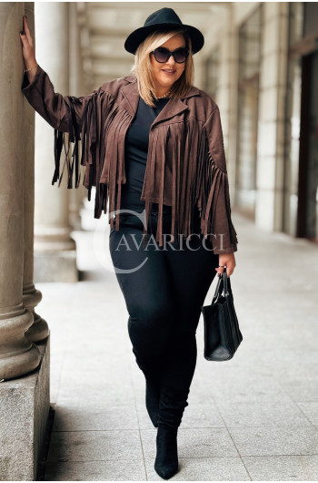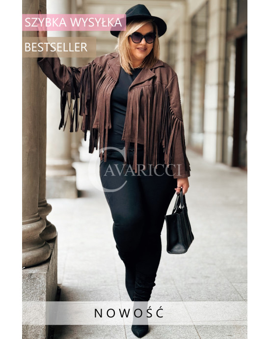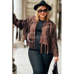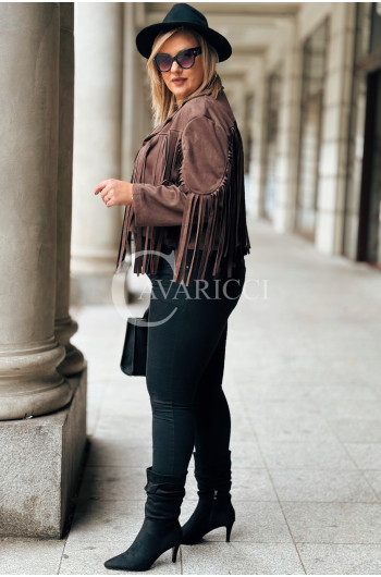 FORLI - Zamszowa boho kurteczka z frędzlami w kolorze brązowym