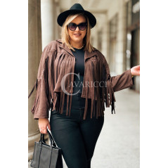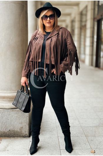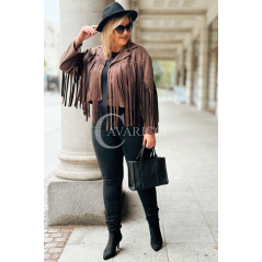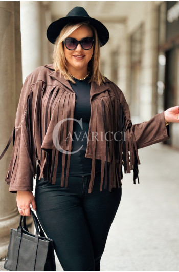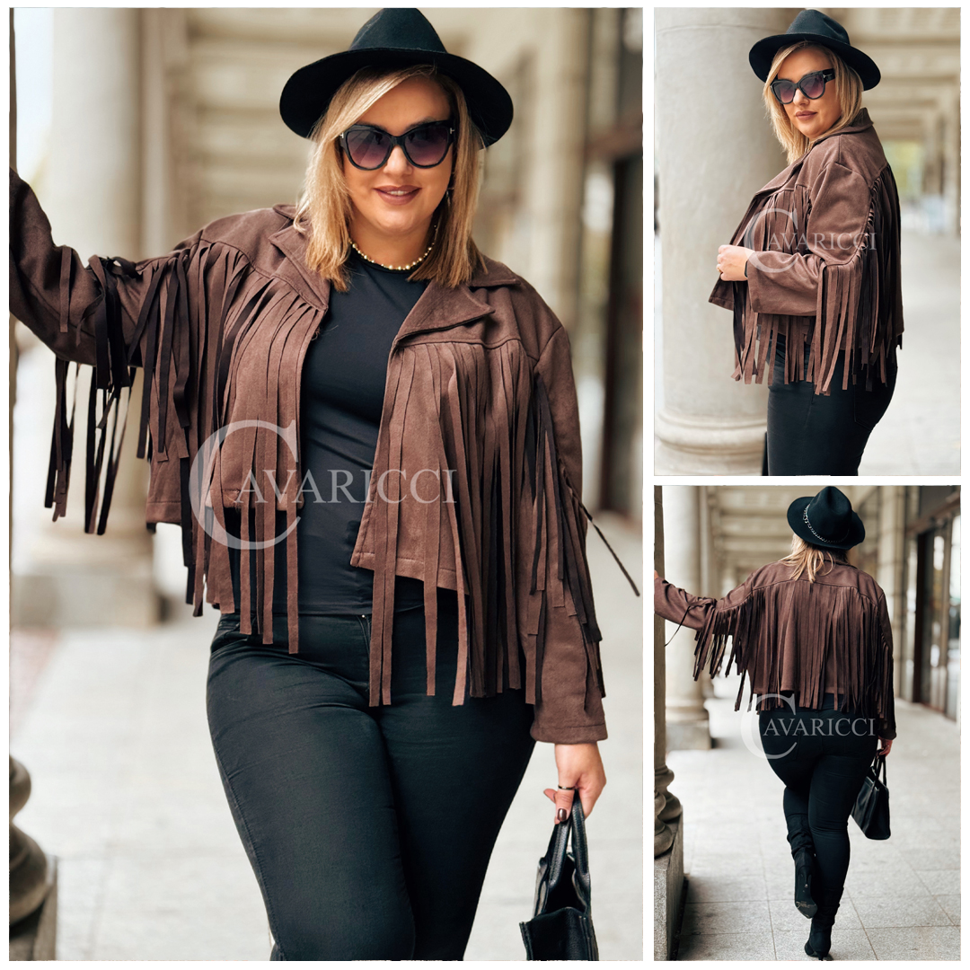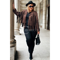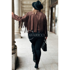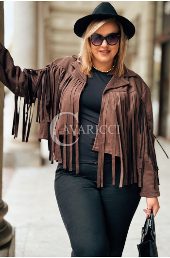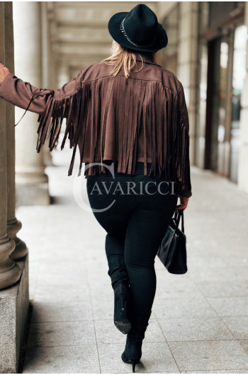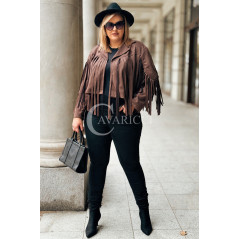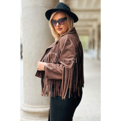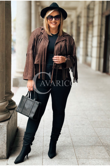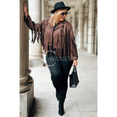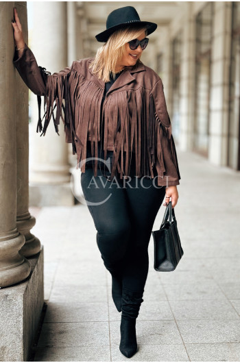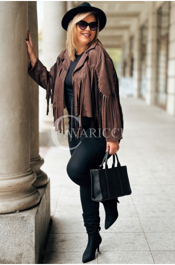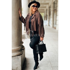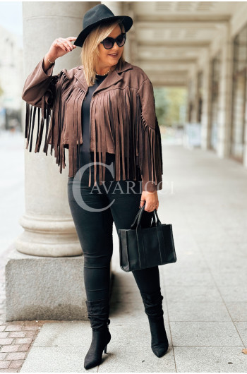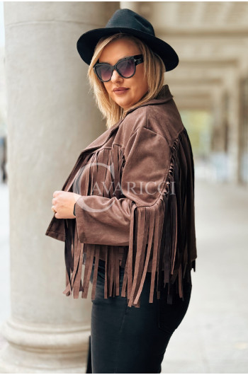 FORLI - Zamszowa boho kurteczka z frędzlami w kolorze brązowym