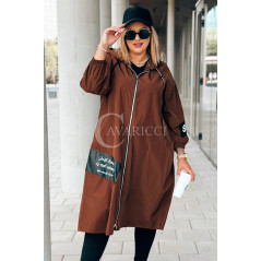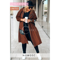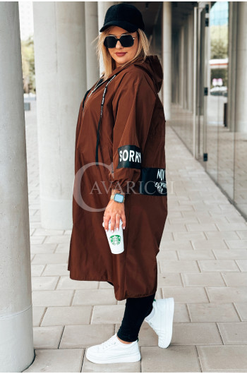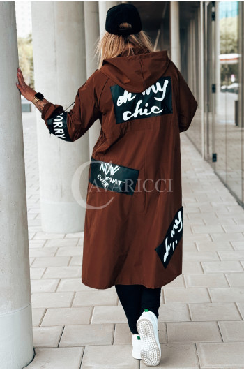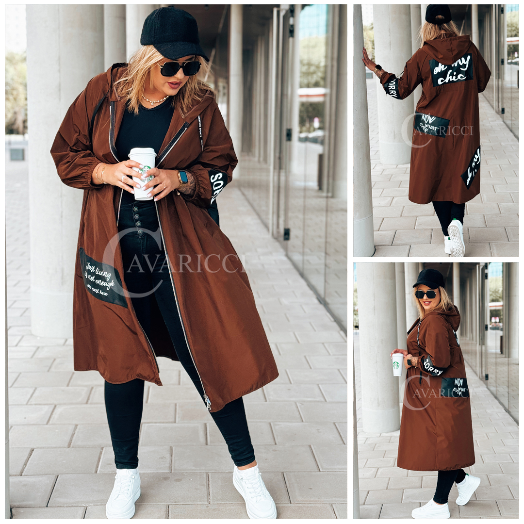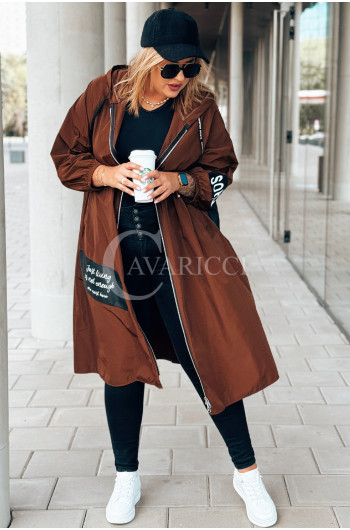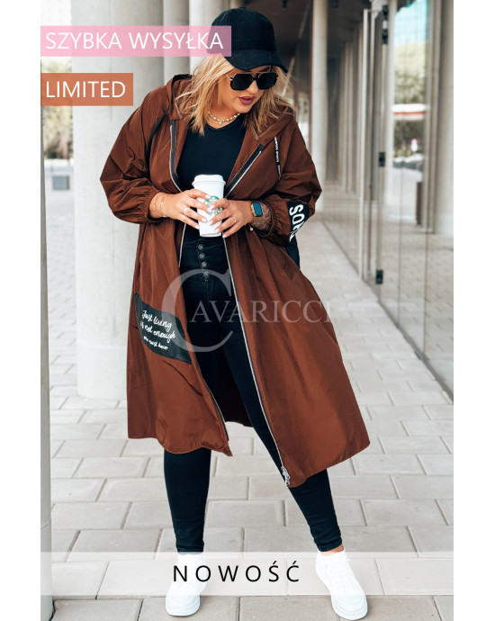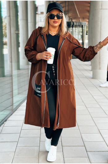 GENUA - Klasyczna długa stylowa kurta typu parka w kolorze brązowym
