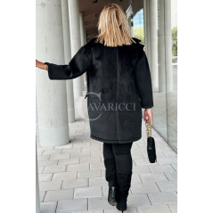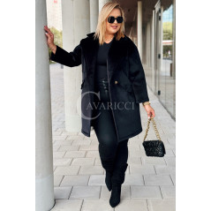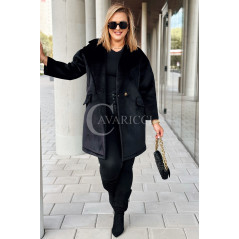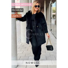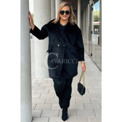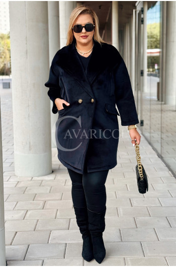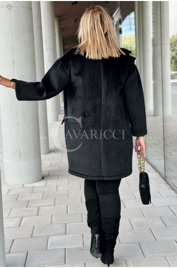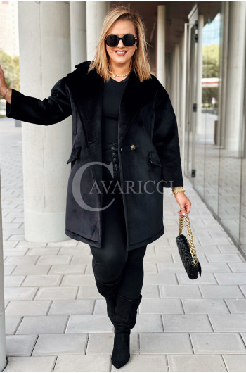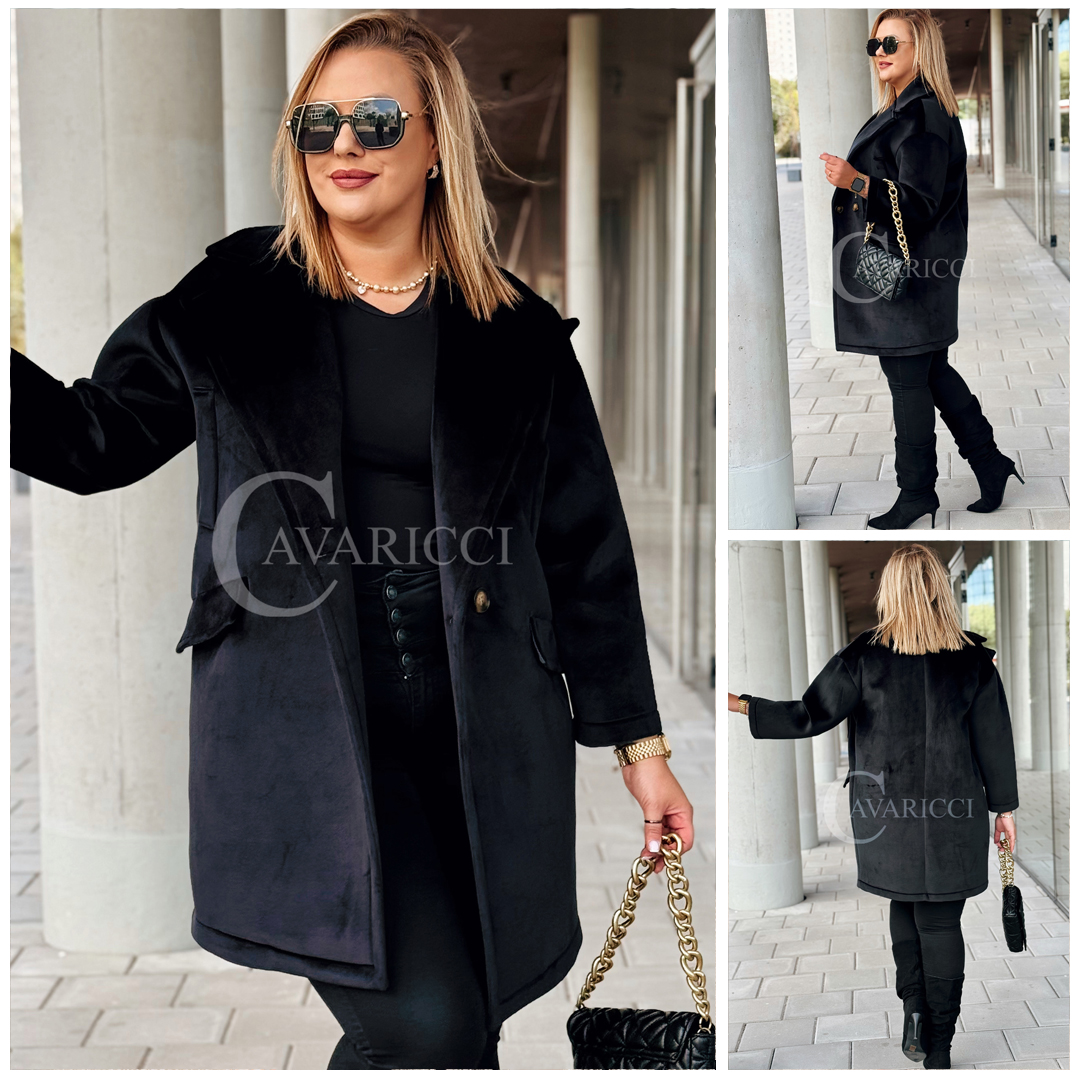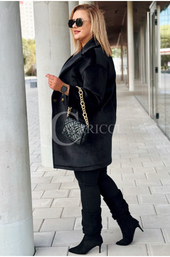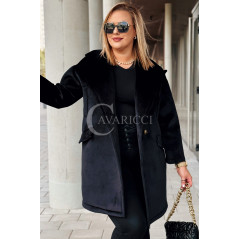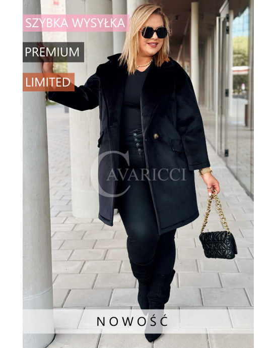 ORSINA- Elegancki klasyczny pluszowy płaszcz jesienny w kolorze czarnym
