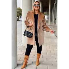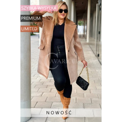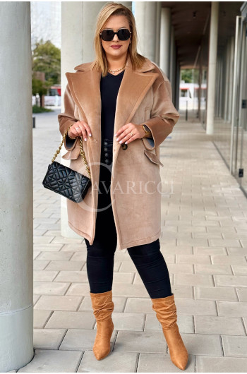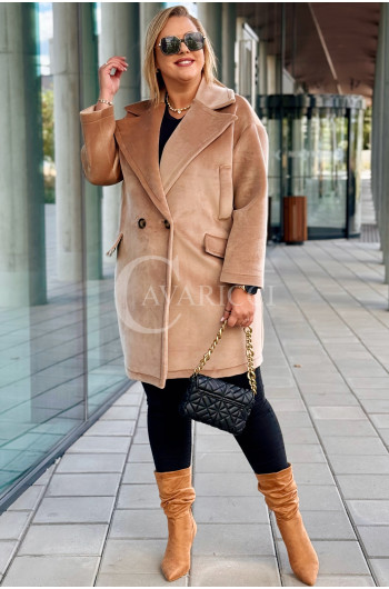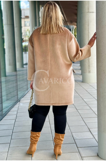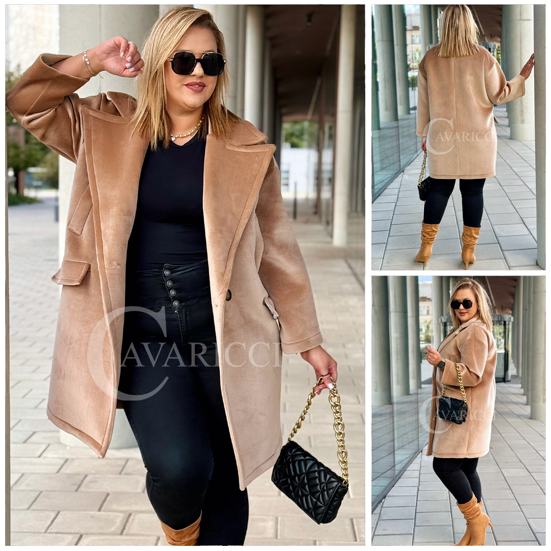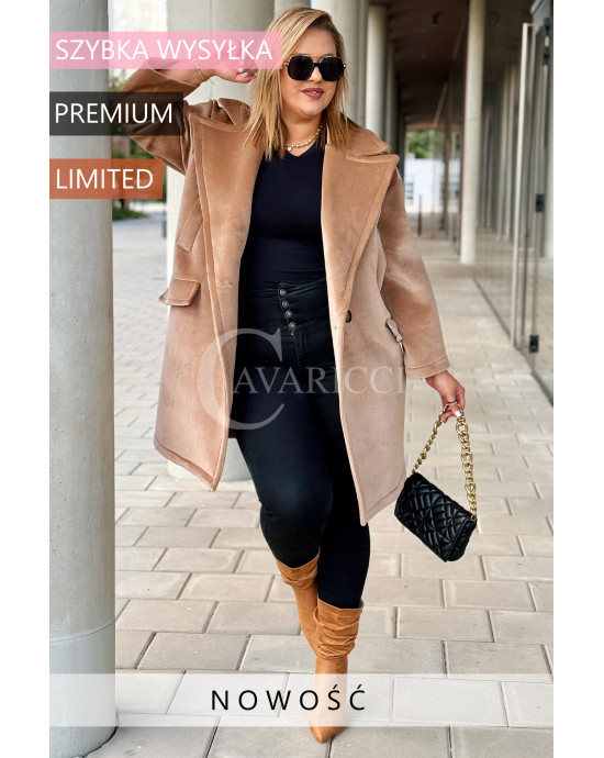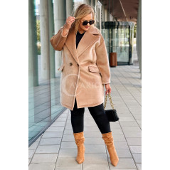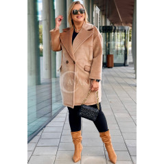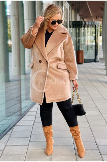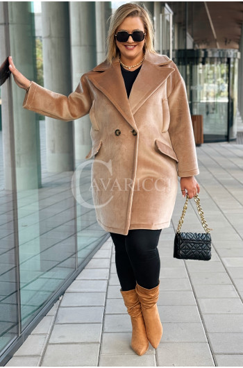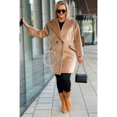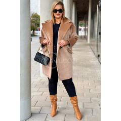 ORSINA- Elegancki klasyczny pluszowy płaszcz jesienny w kolorze beżowym