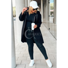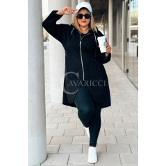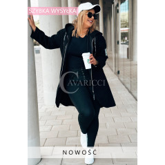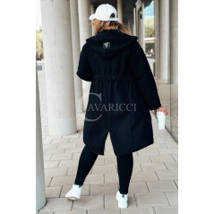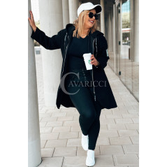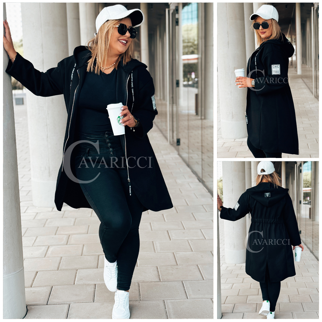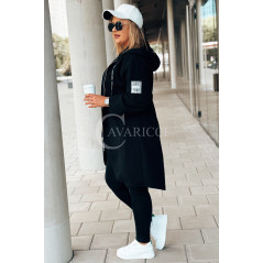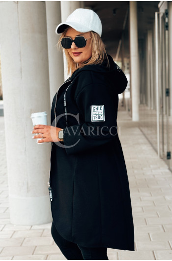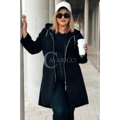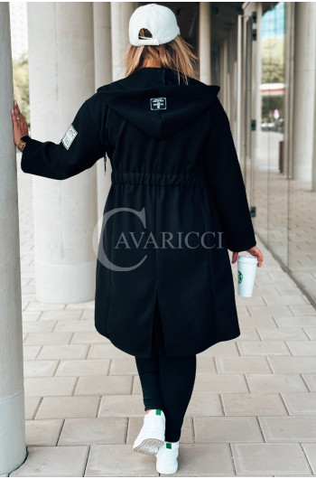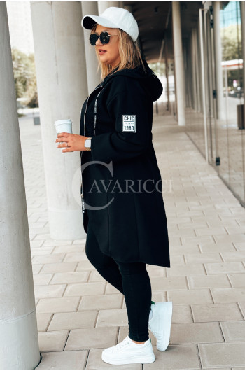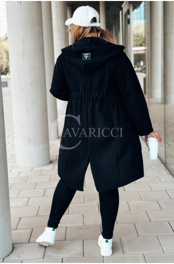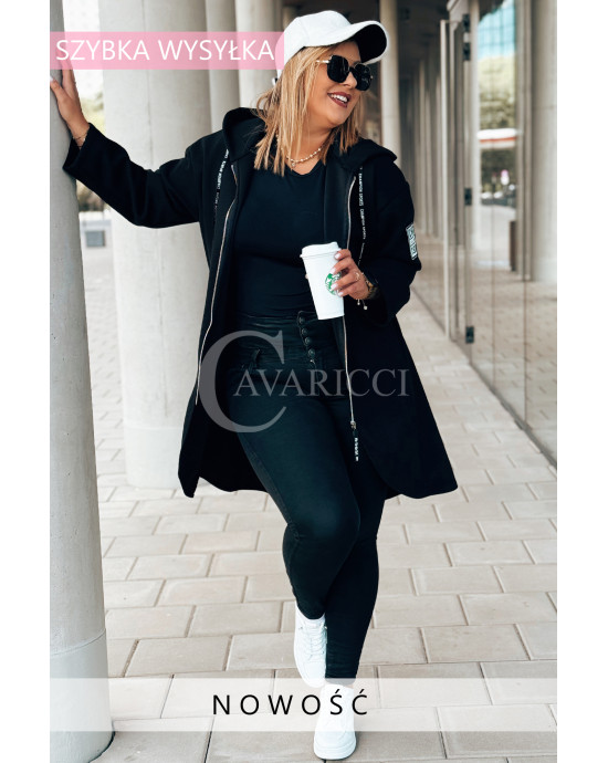 NASTRO - Jesienna długa zapinana bluza z kapturem w kolorze czarnym