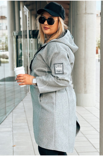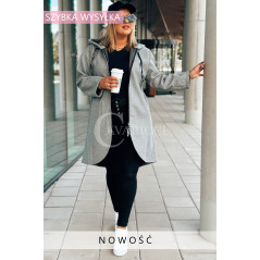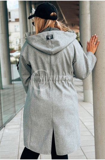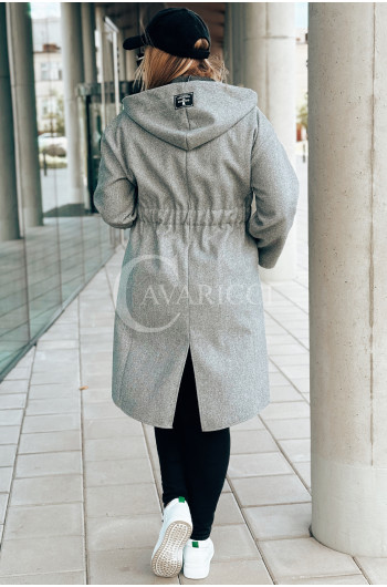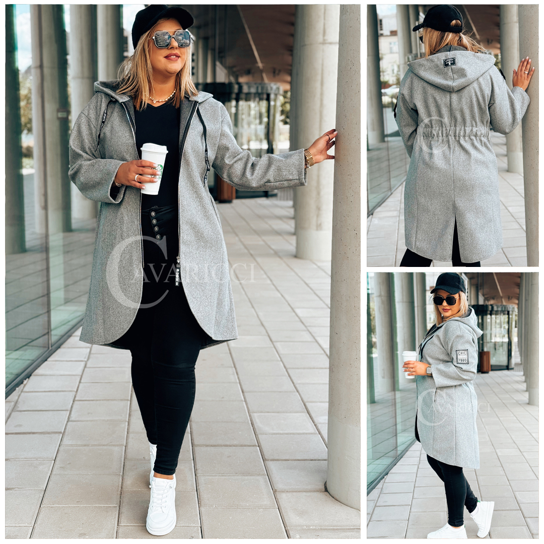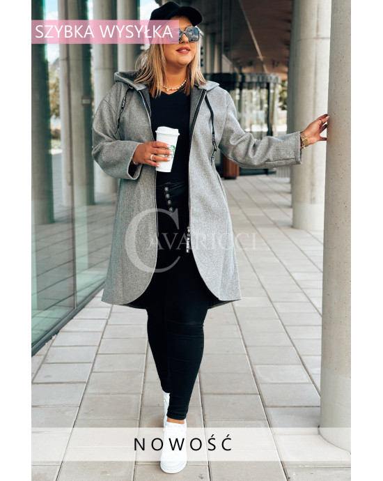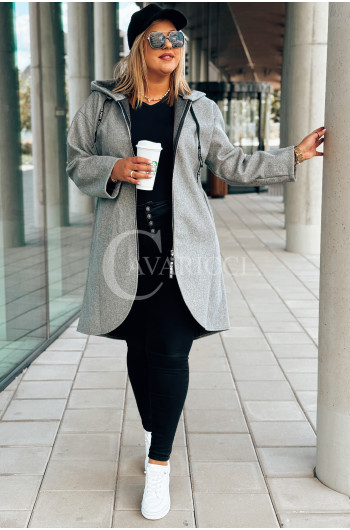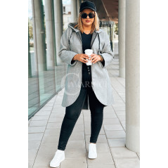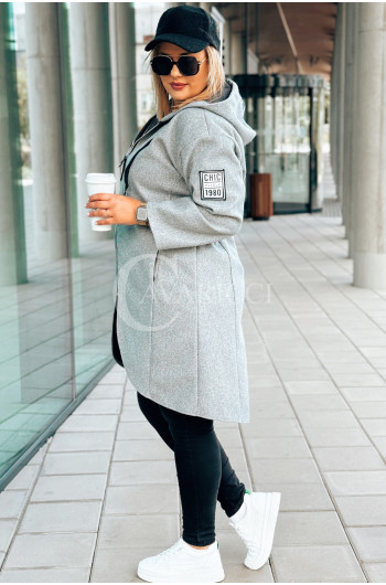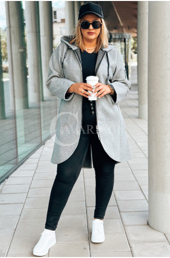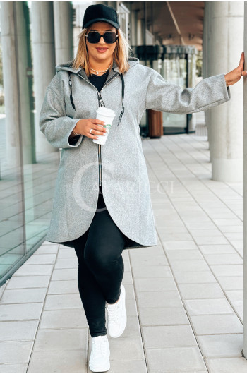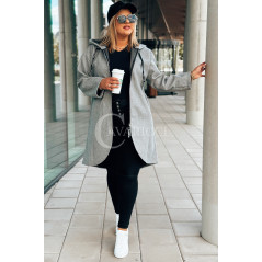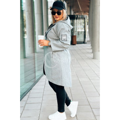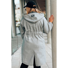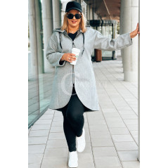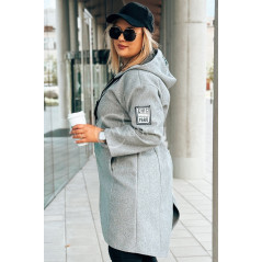 NASTRO - Jesienna długa zapinana bluza z kapturem w kolorze szarym