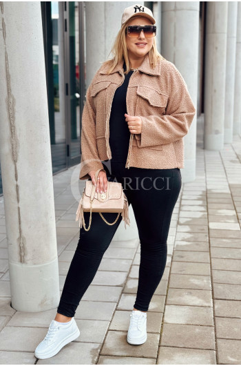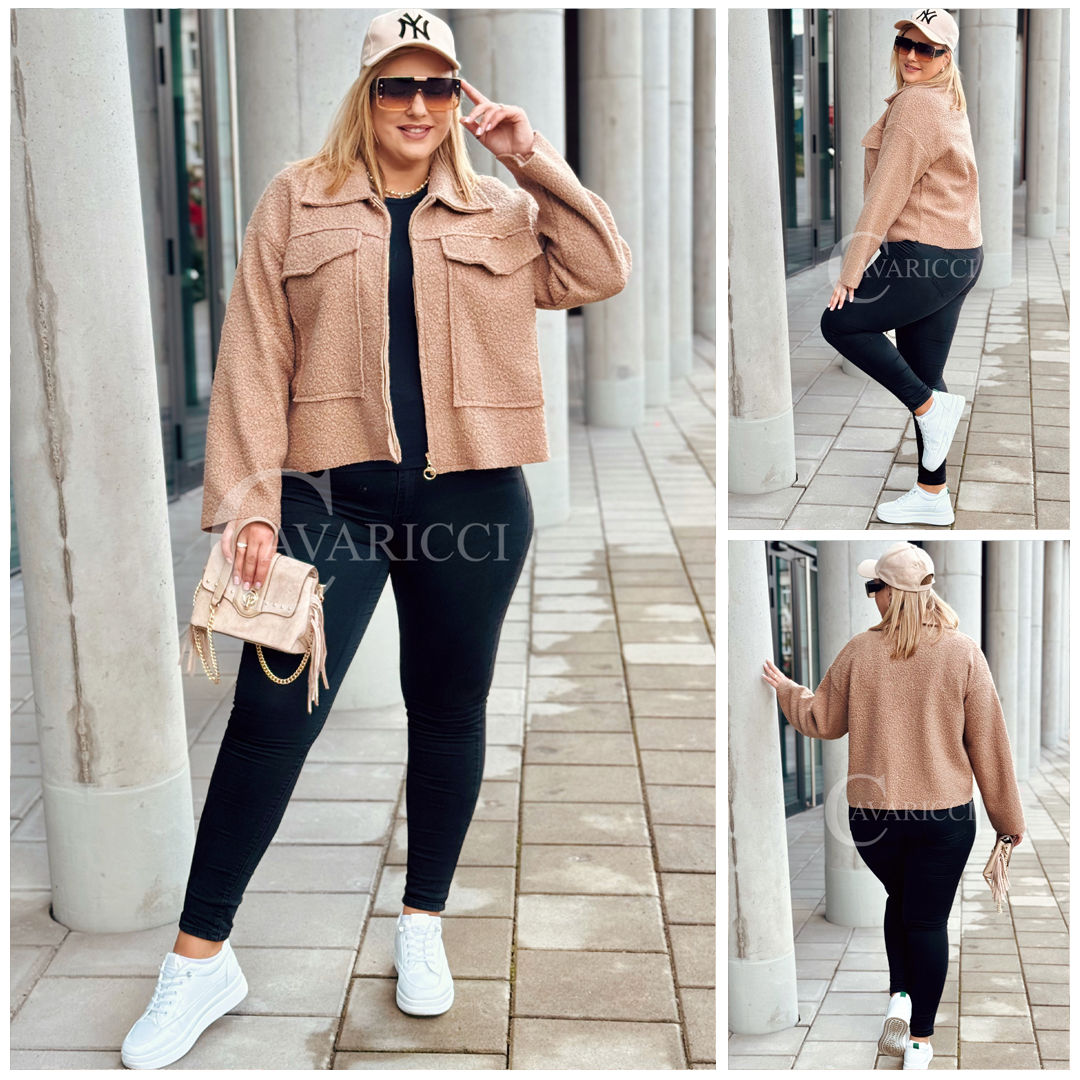 🧥 BELPASSO – LEKKA KURTKA BOUCLÉ Z KIESZENIAMI I ZŁOTYM ZAMKIEM