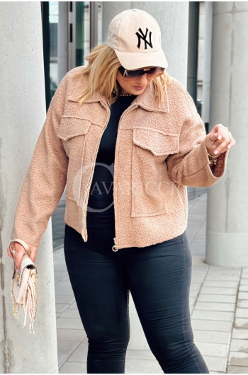 🧥 BELPASSO – LEKKA KURTKA BOUCLÉ Z KIESZENIAMI I ZŁOTYM ZAMKIEM