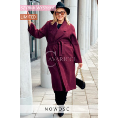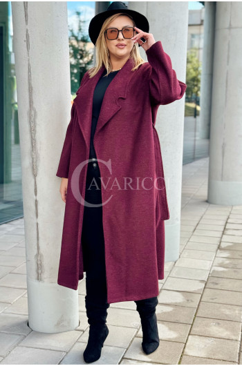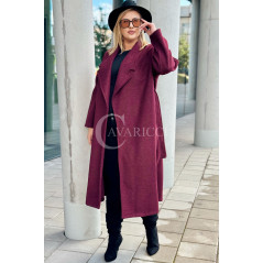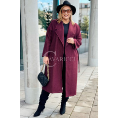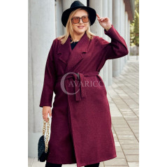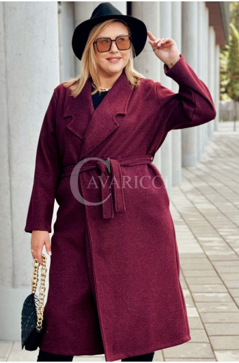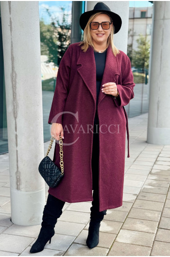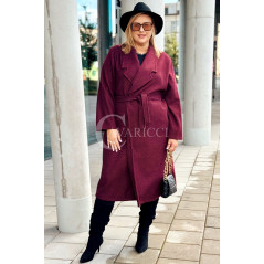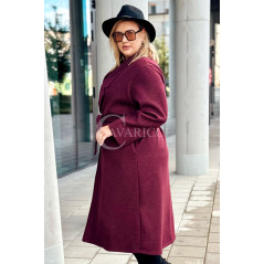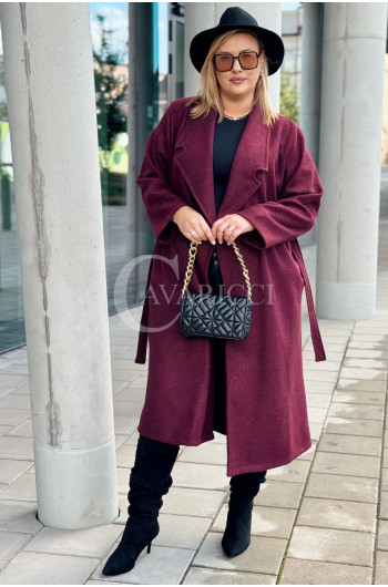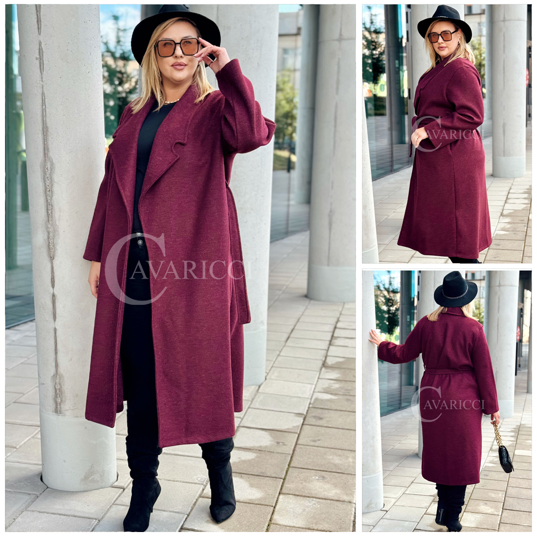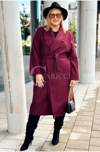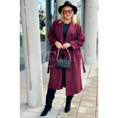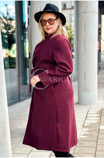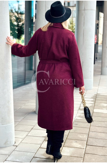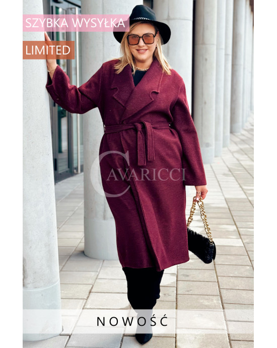 CINTURA - Elegancki klasyczny jesienny płaszcz w kolorze bordowym
