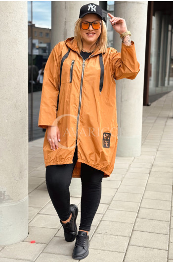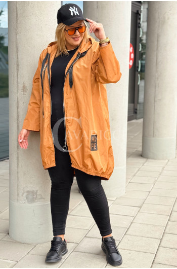VIESTE - Prosta modna kurta z kieszenią typu parka w kolorze karmelowym