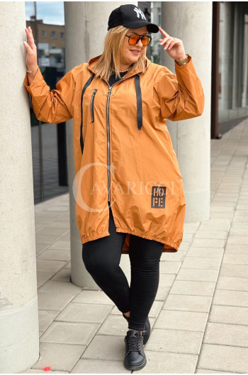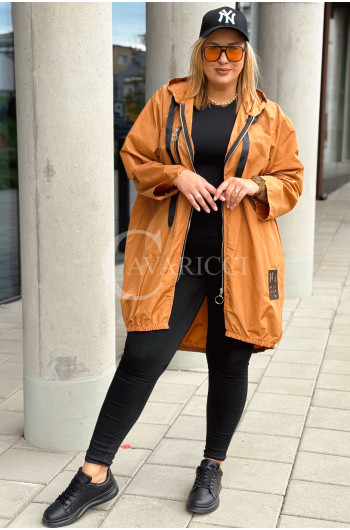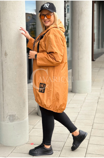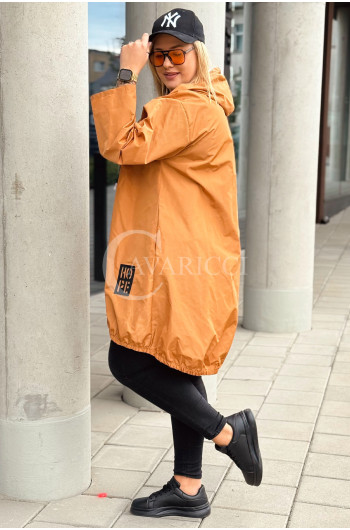 VIESTE - Prosta modna kurta z kieszenią typu parka w kolorze karmelowym
