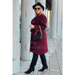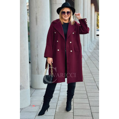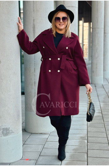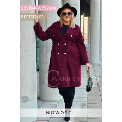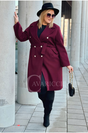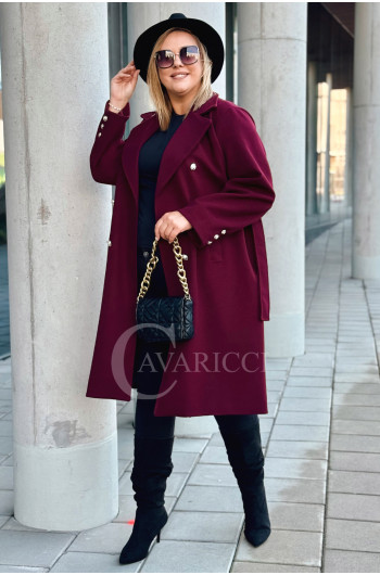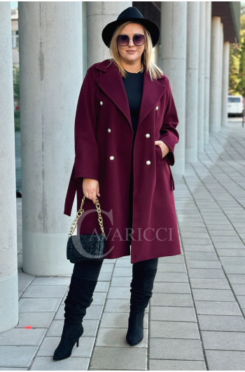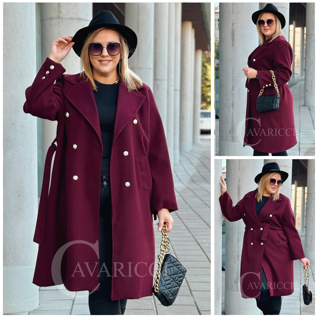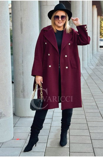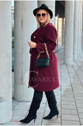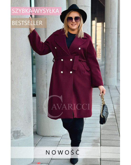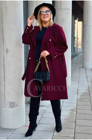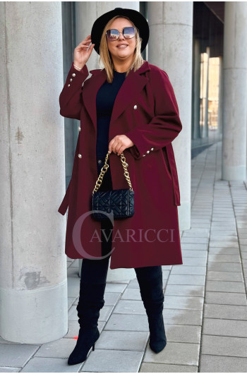 GARDA - Elegancki klasyczny płaszcz z guzikami w kolorze bordowym