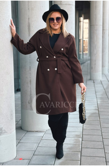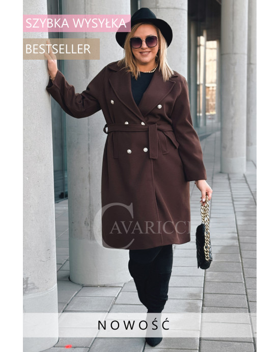 GARDA - Elegancki klasyczny płaszcz z guzikami w kolorze brązowym