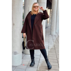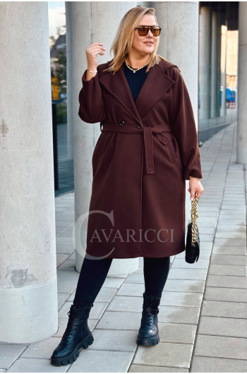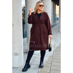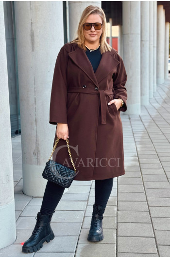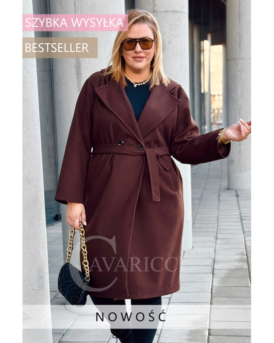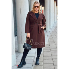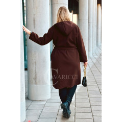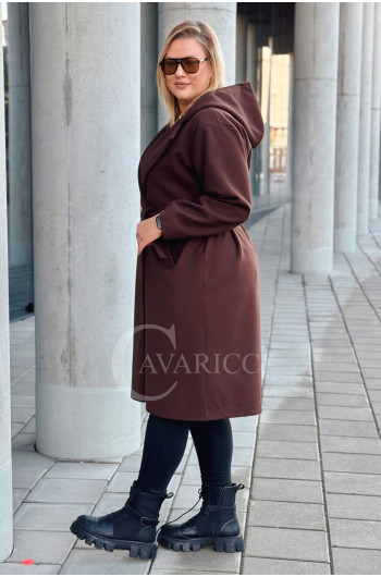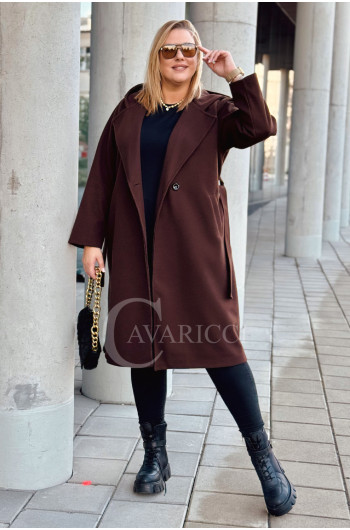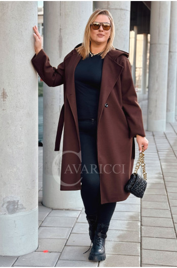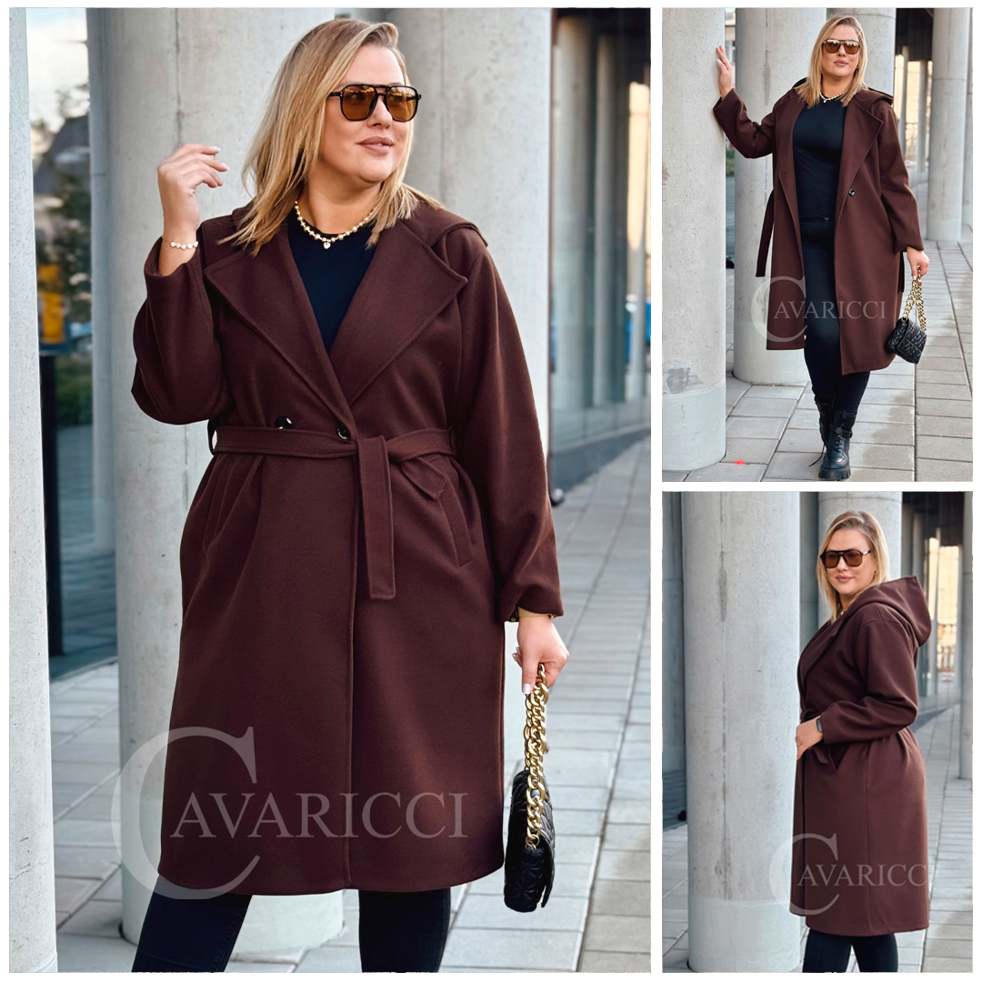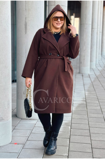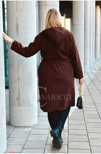 PARMA - Klasyczny płaszcz z kapturem i guzikami w kolorze brązowym