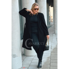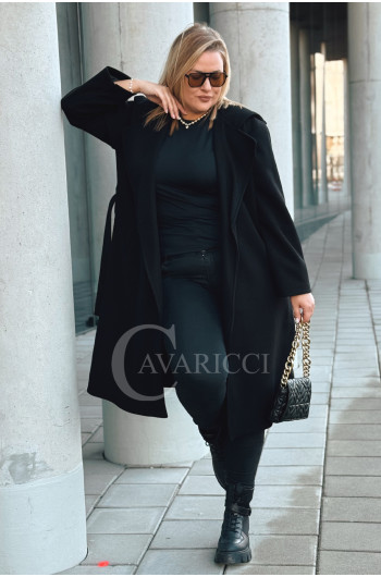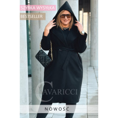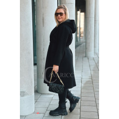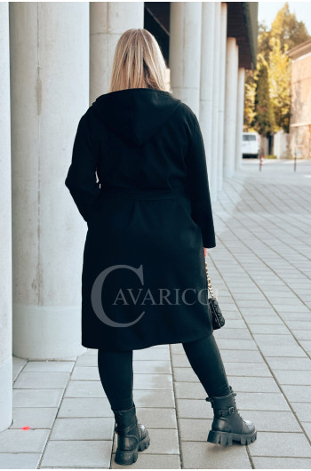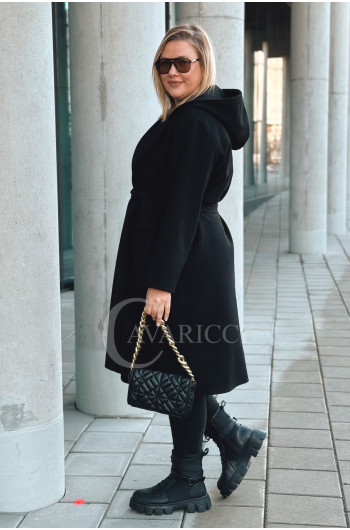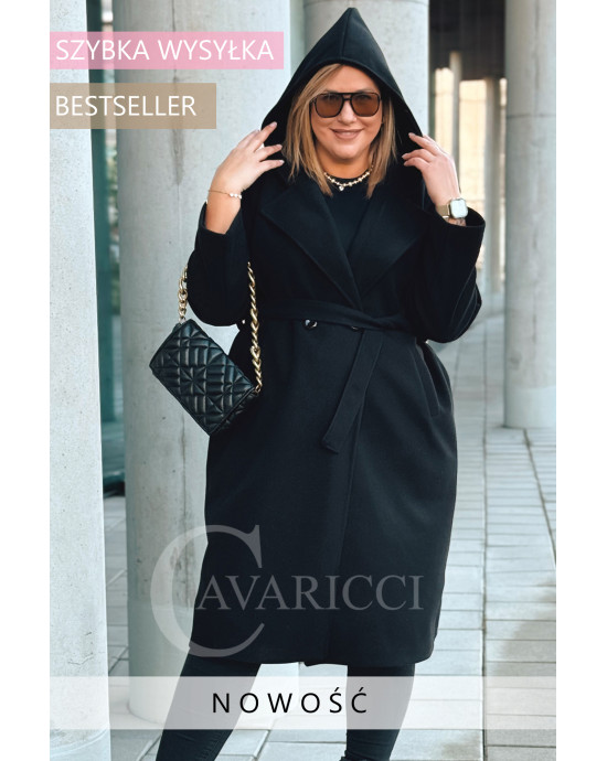 PARMA - Klasyczny płaszcz z kapturem i guzikami w kolorze czarnym