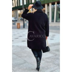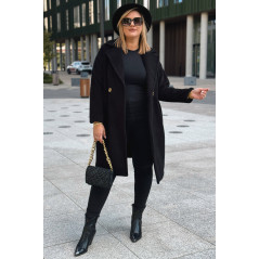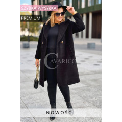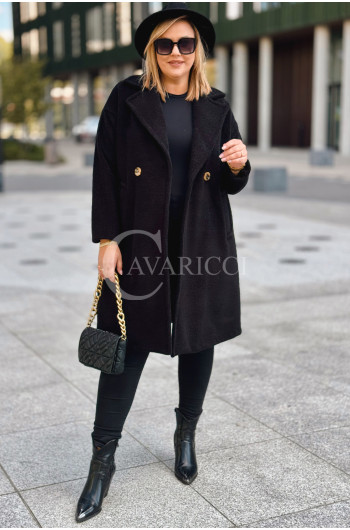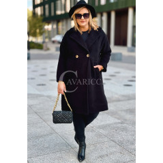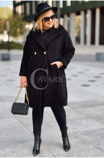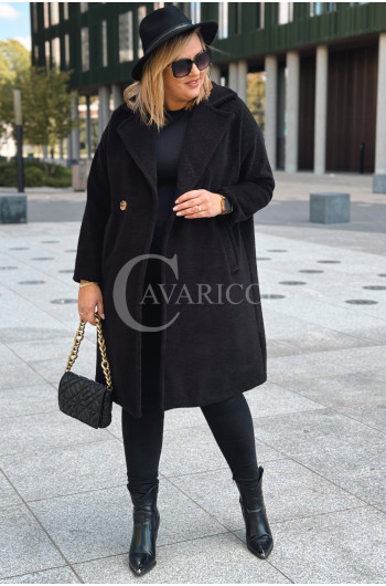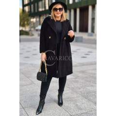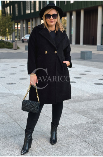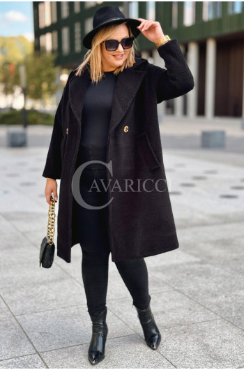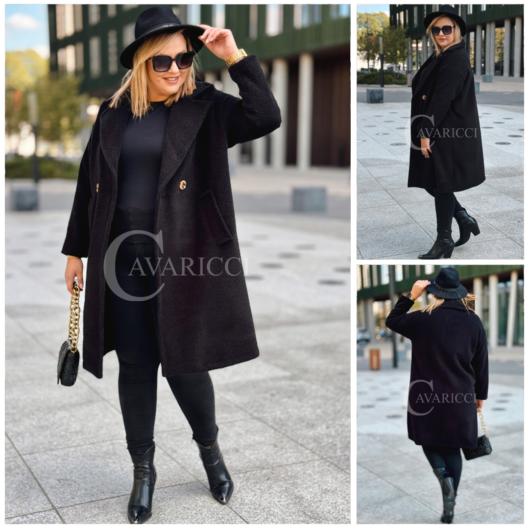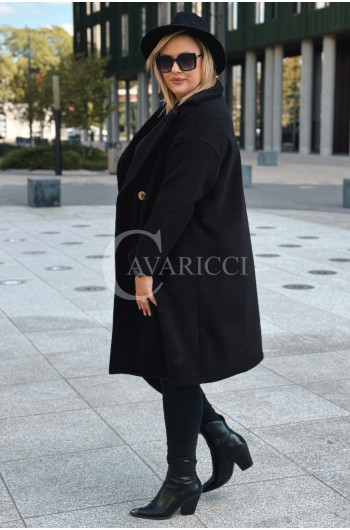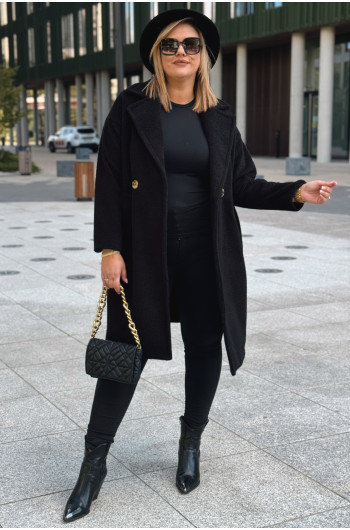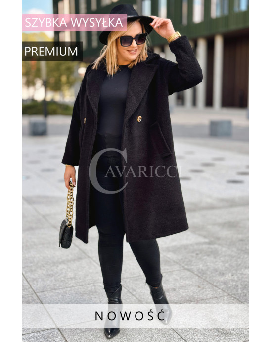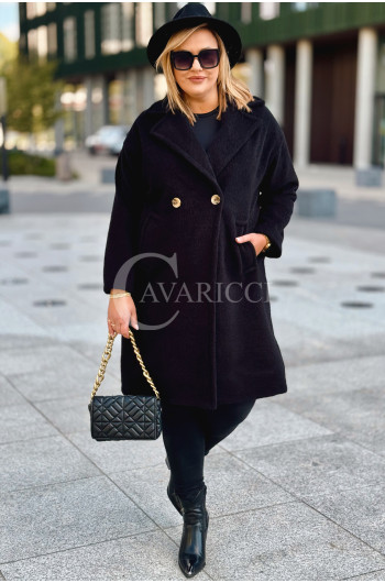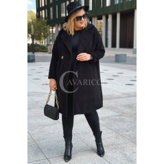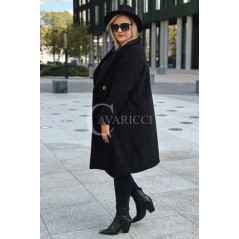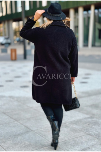 AVOLA - Klasyczny alpakowy płaszcz z kołnierzykiem w kolorze czarnym