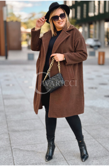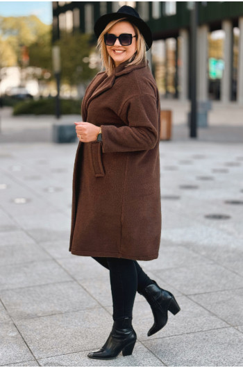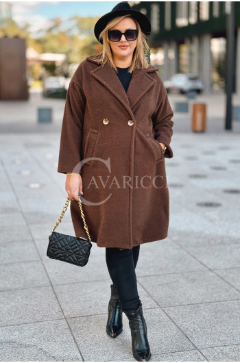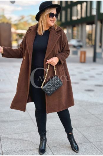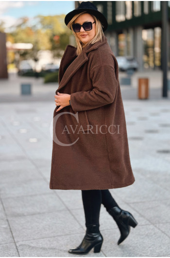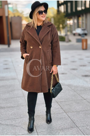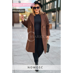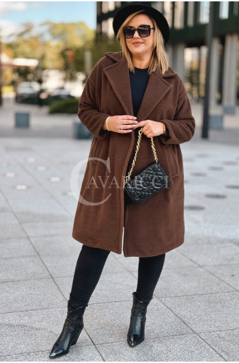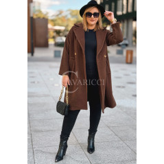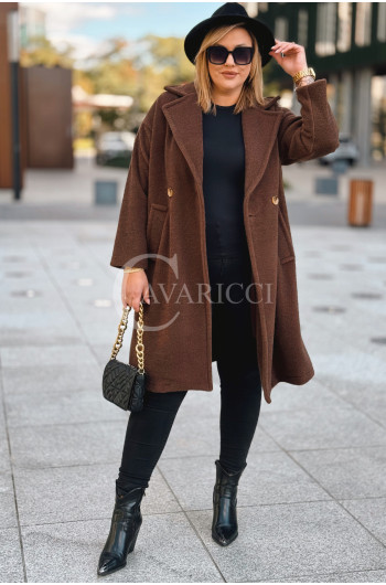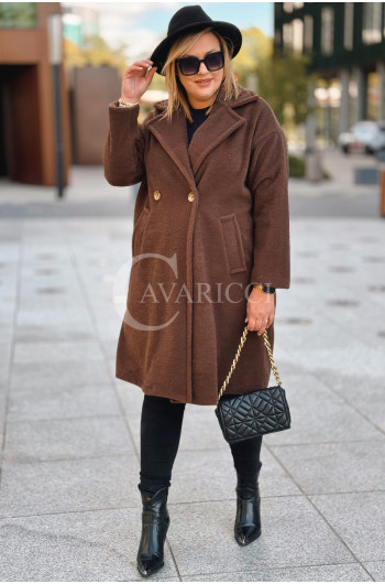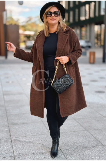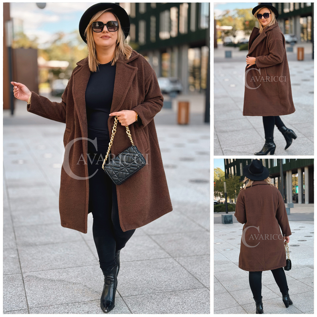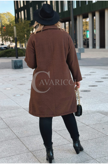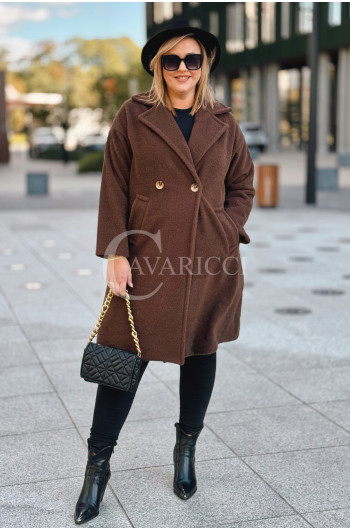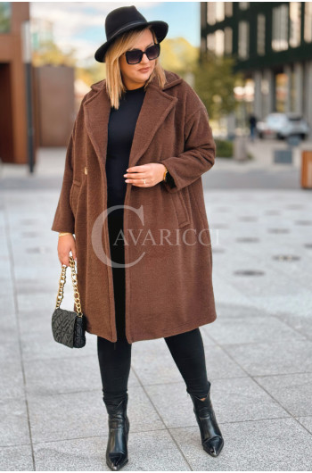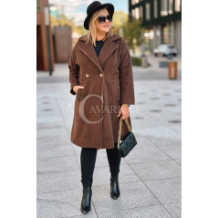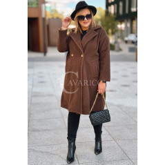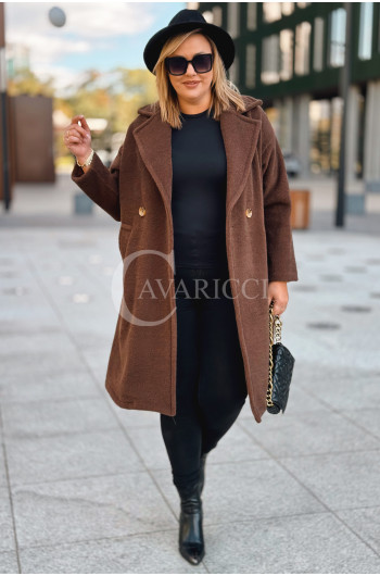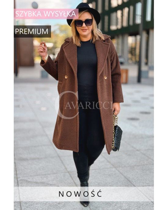 AVOLA - Klasyczny alpakowy płaszcz z kołnierzykiem w kolorze brązowym
