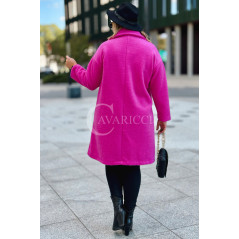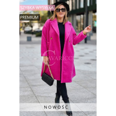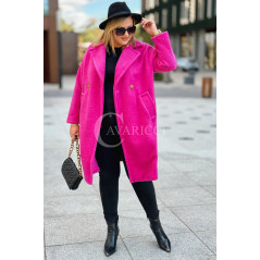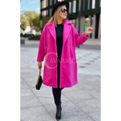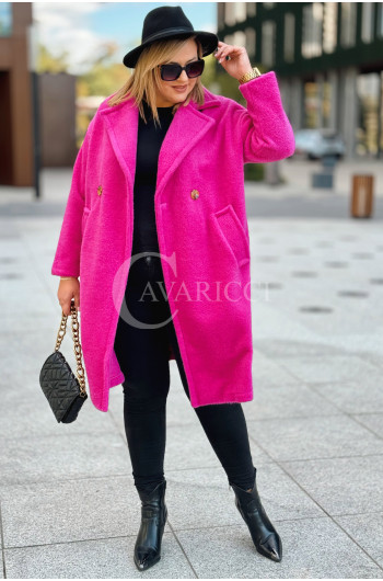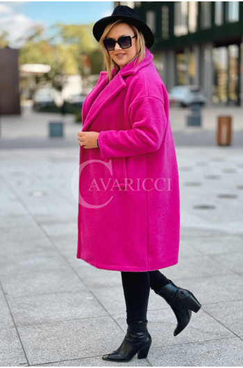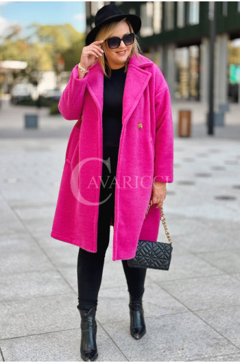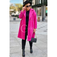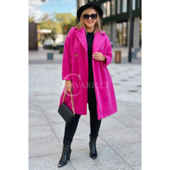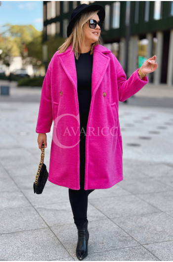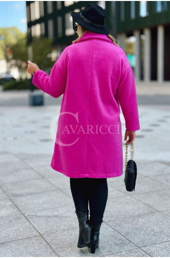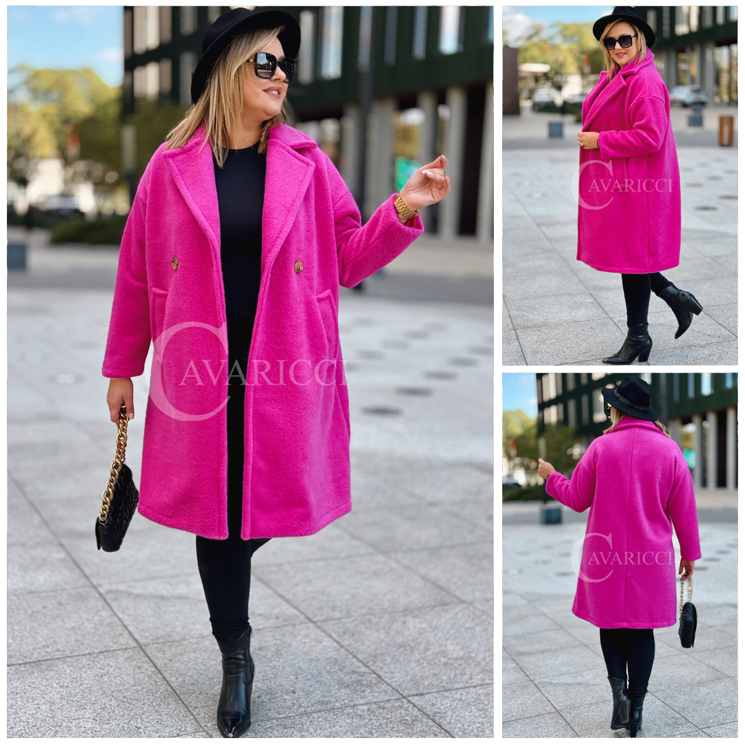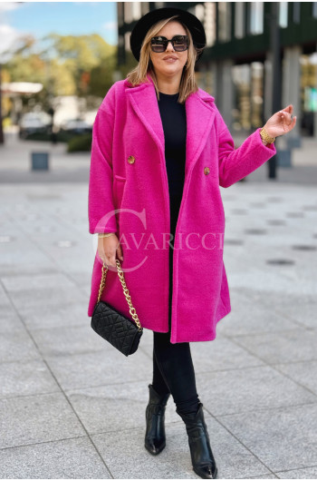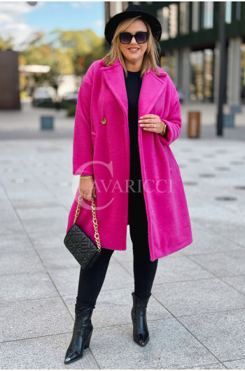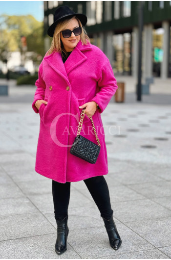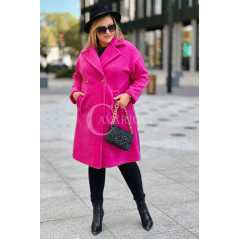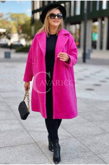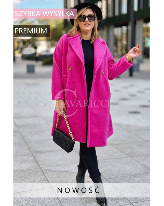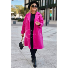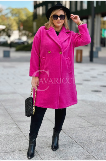 AVOLA - Klasyczny alpakowy płaszcz z kołnierzykiem w kolorze fuksji
