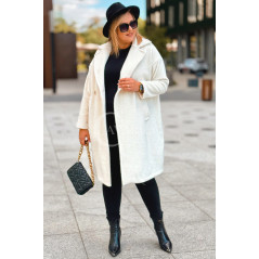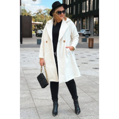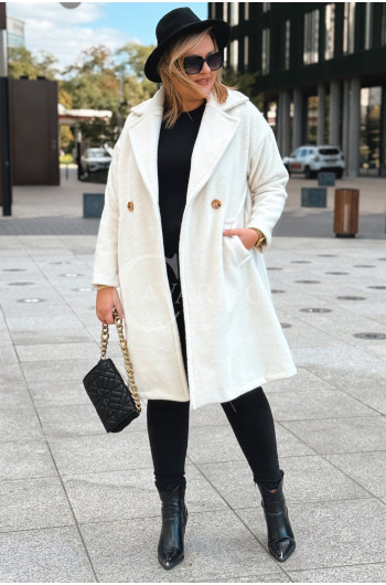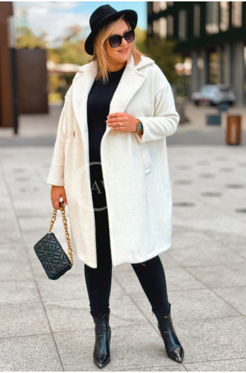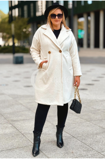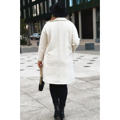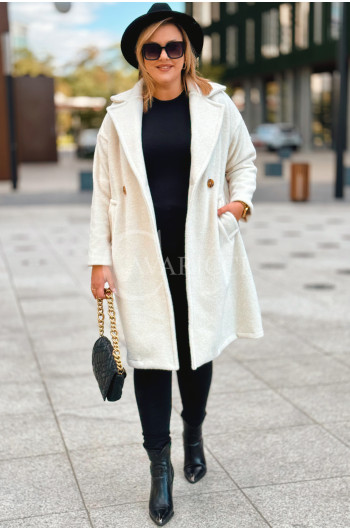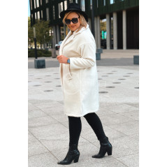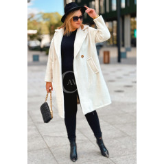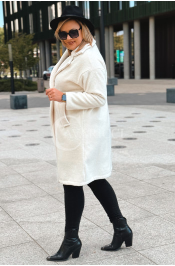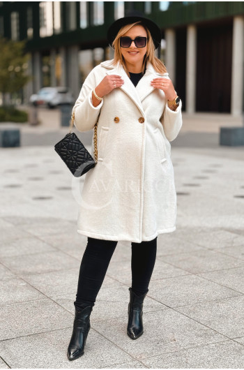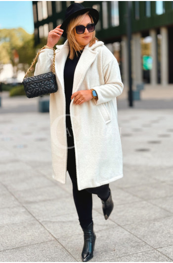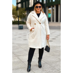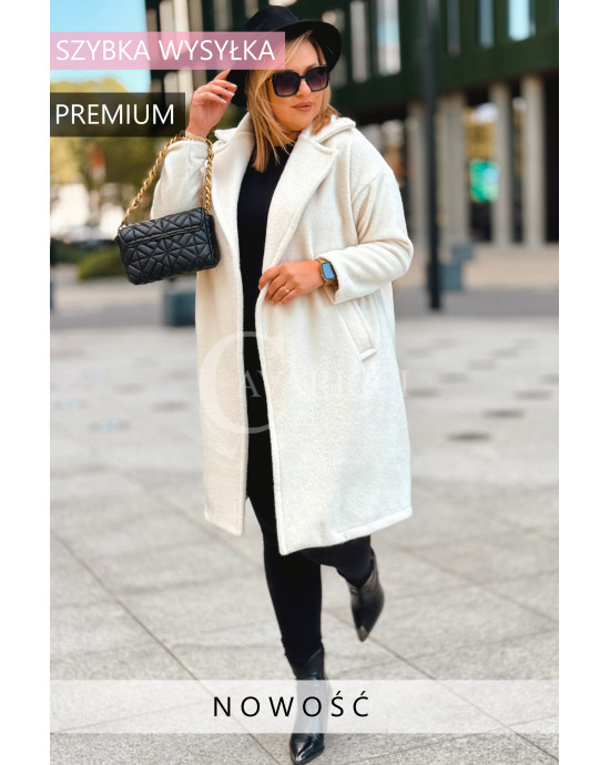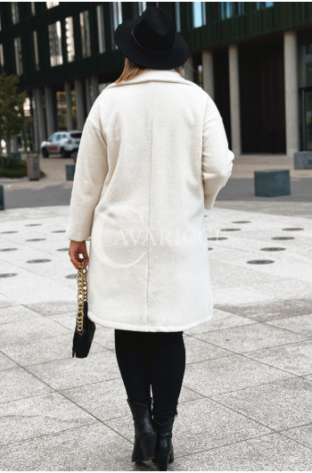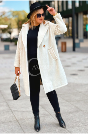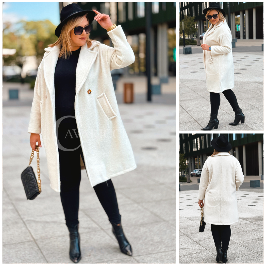 AVOLA - Klasyczny alpakowy płaszcz z kołnierzykiem w kolorze kremowym