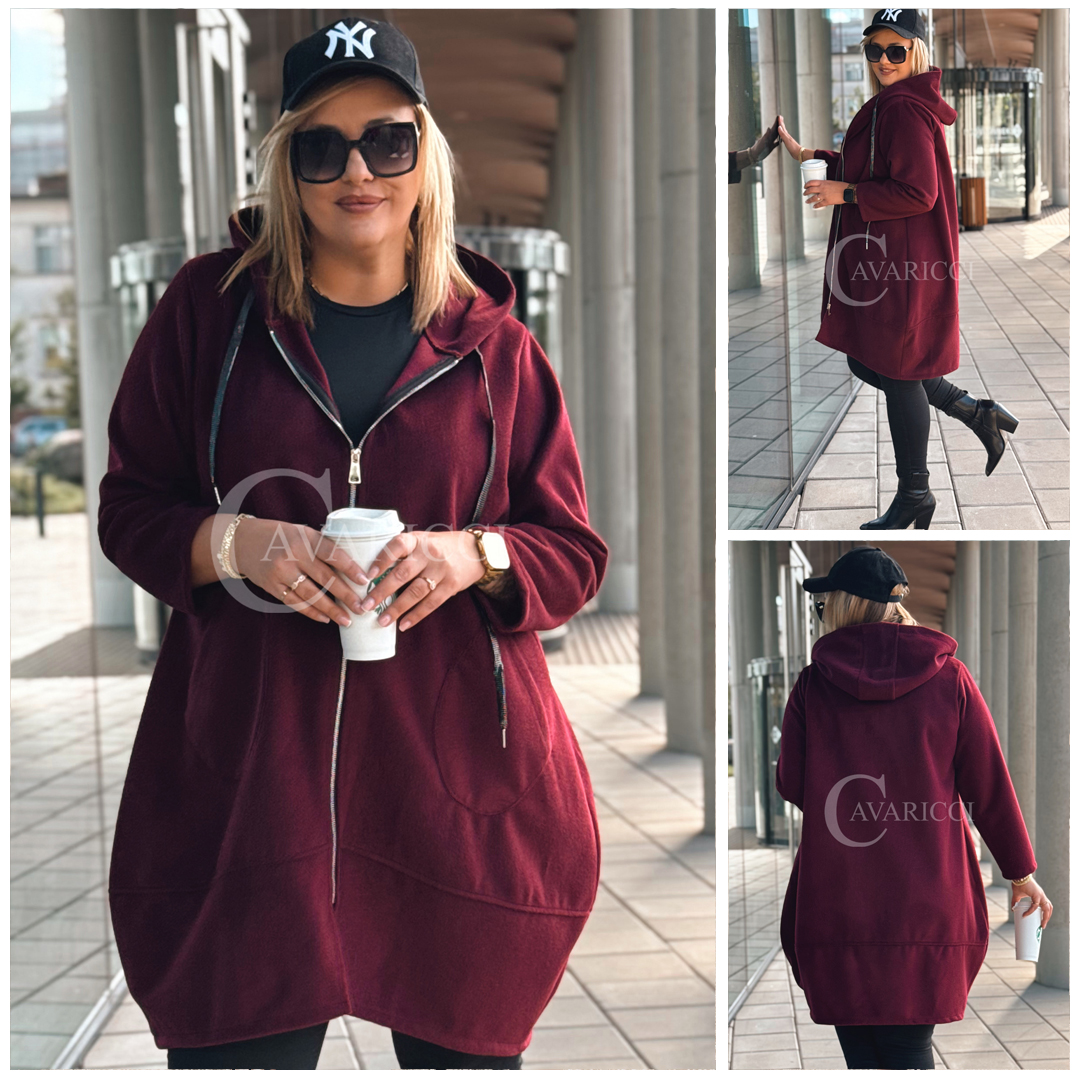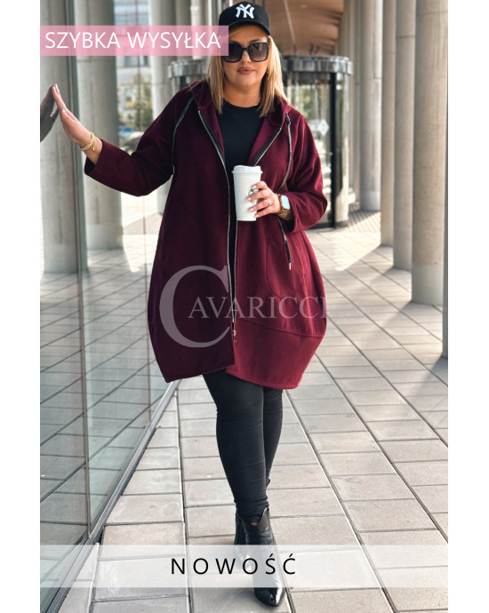 GRESSAN - Klasyczny płaszcz z kapturem i zamkiem w kolorze bordowym