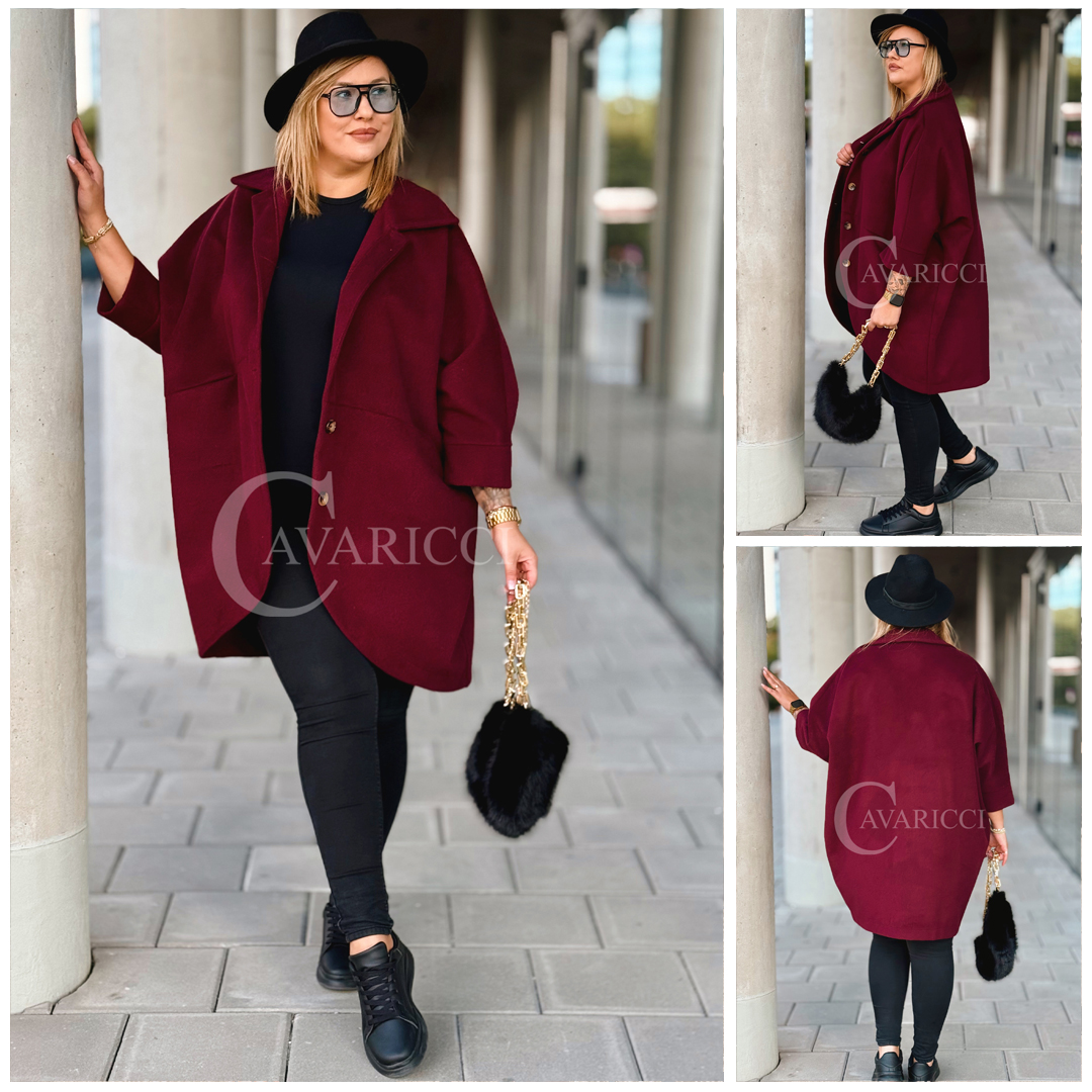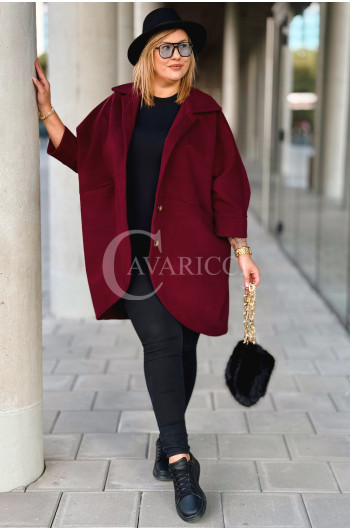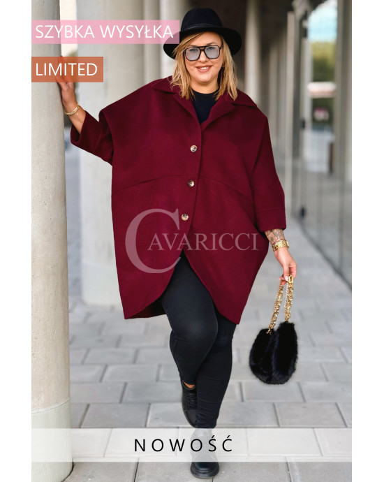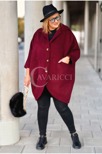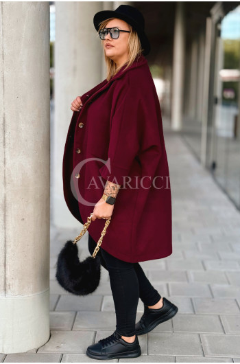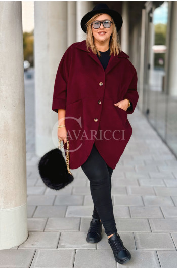 CECINA - Płaszczyk oversize z guzikami i kołnierzykiem w kolorze bordowym
