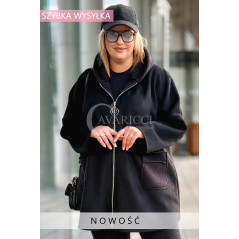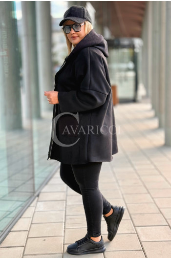🧥 BACOLI – PŁASZCZ OVERSIZE Z KAPTUREM I WSTAWKAMI BOUCLE