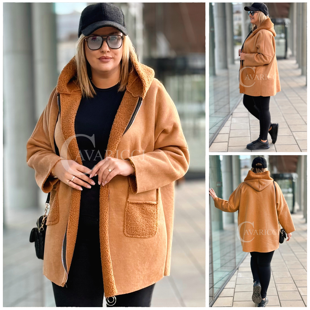 🧥 BACOLI – PŁASZCZ OVERSIZE Z KAPTUREM I WSTAWKAMI BOUCLE