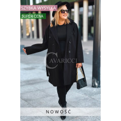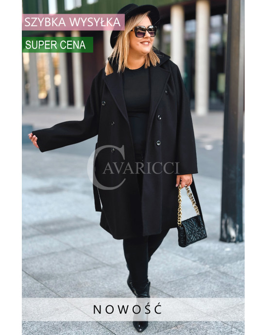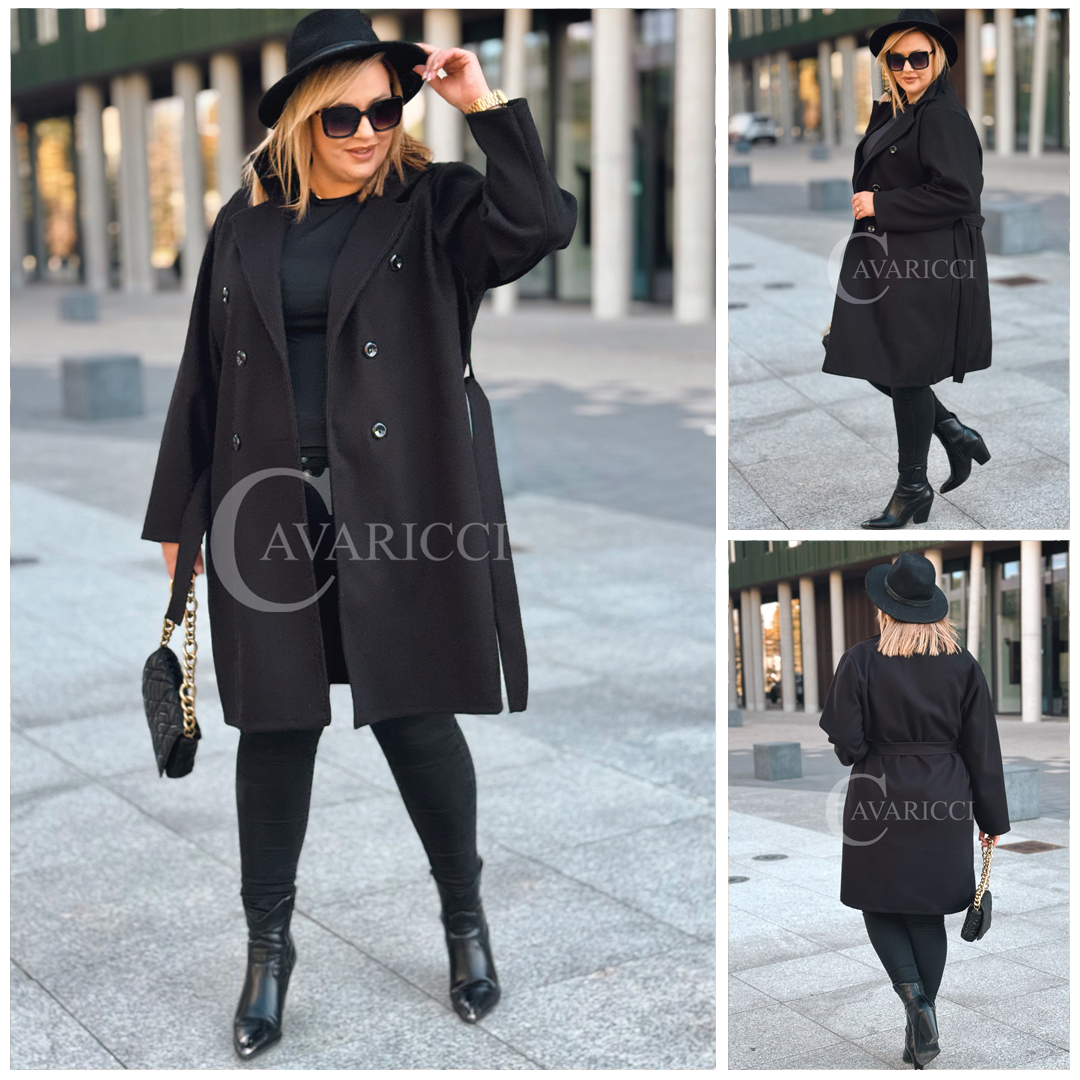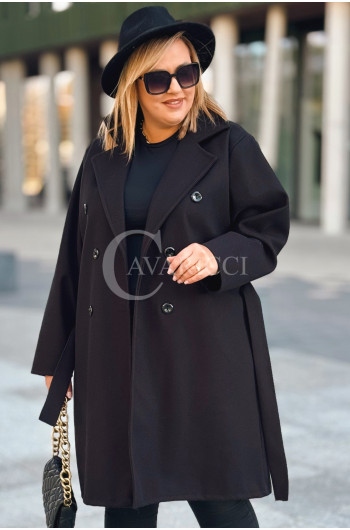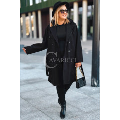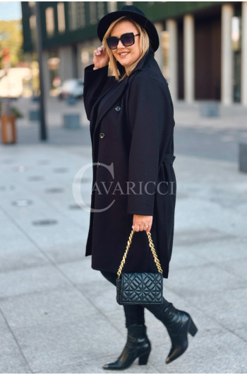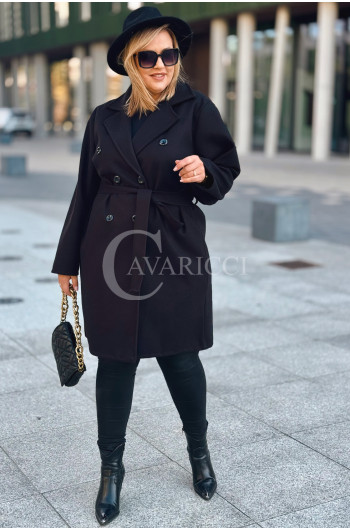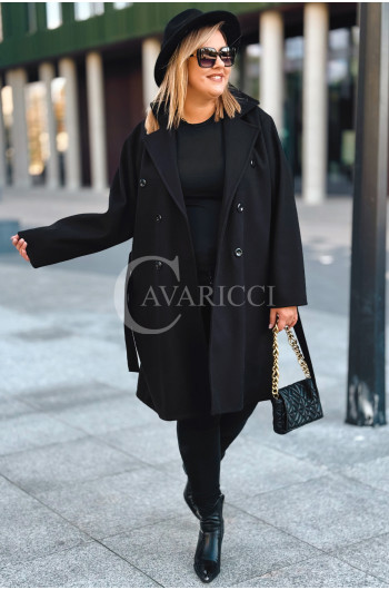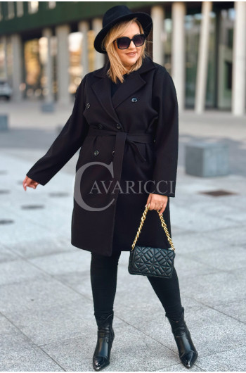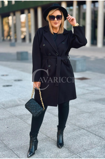 TRANI - Klasyczny płaszcz z guzikami i paskiem w kolorze czarnym