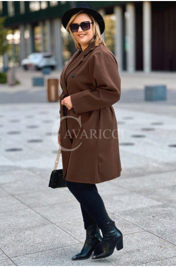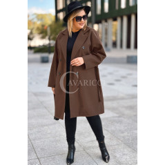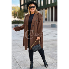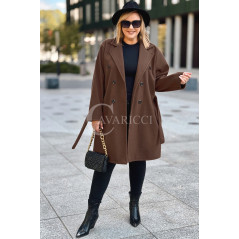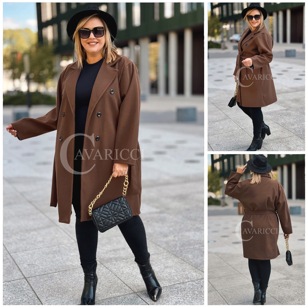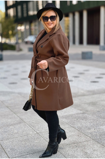 TRANI - Klasyczny płaszcz z guzikami i paskiem w kolorze brązowym
