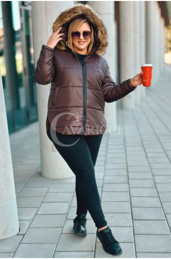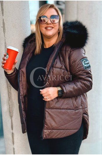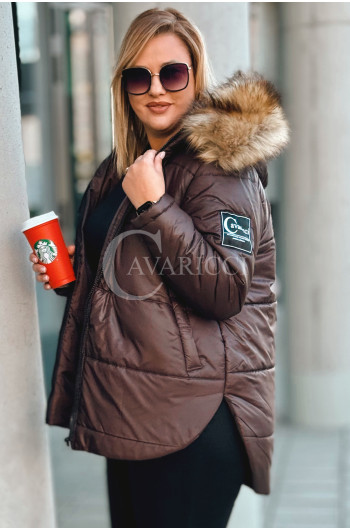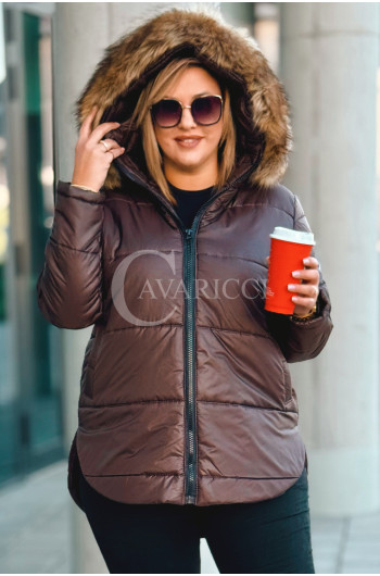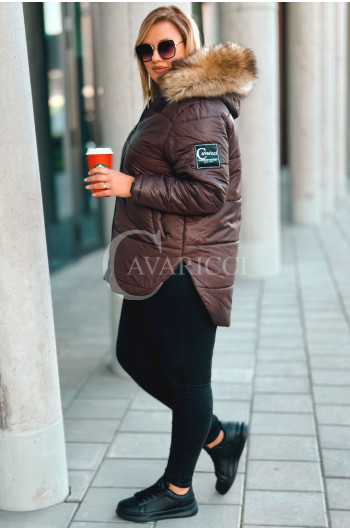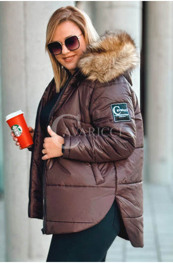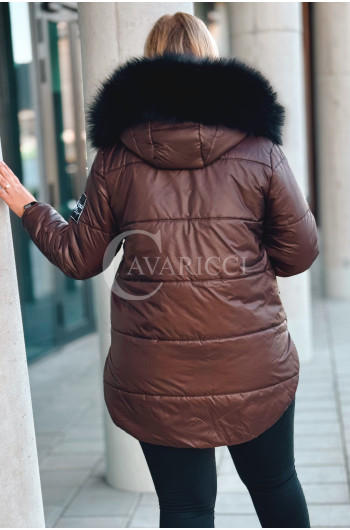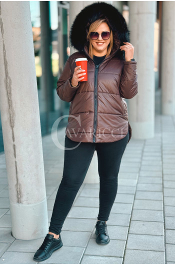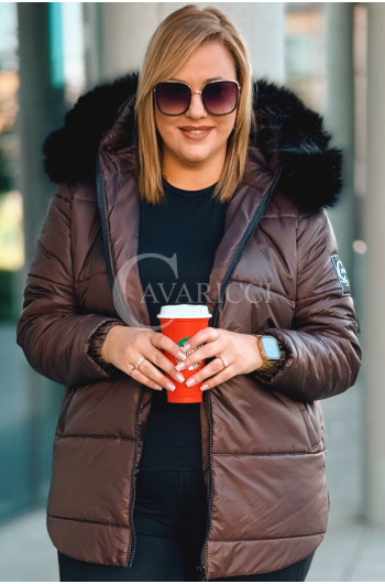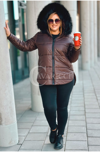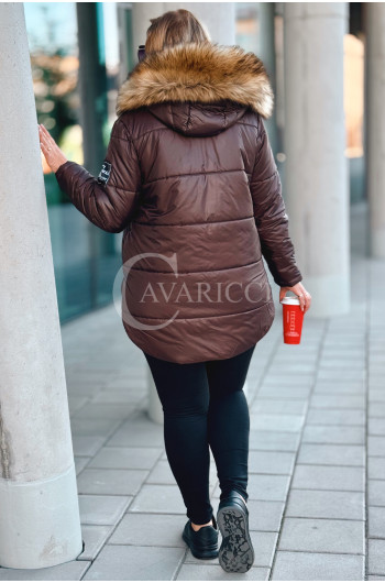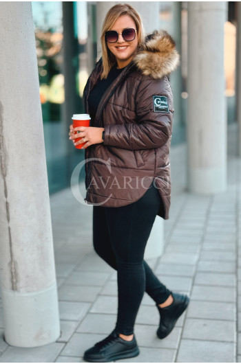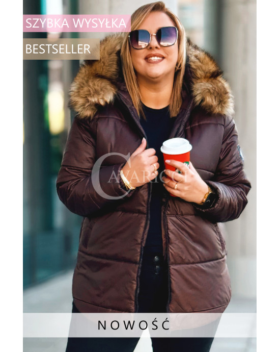 CARMEN – zimowa bestsellerowa kurtka z odpinanym futrem kolor czekoladowy
