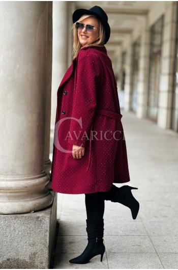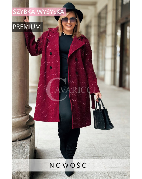 PERLA - kobiecy, błyszczący i niezwykle stylowy płaszcz w kolorze bordowym