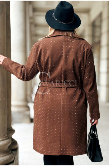 PERLA - kobiecy, błyszczący i niezwykle stylowy płaszcz w kolorze czekoladowym