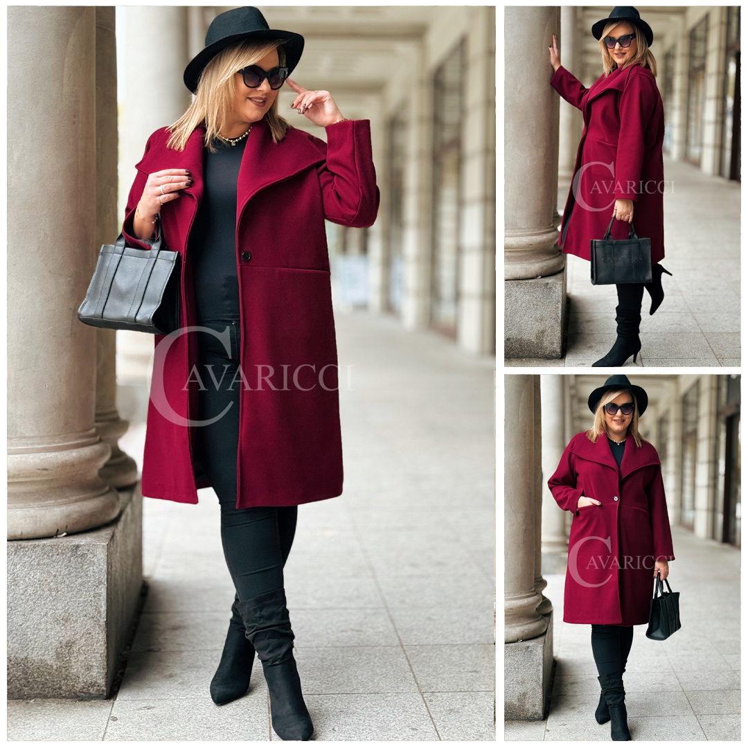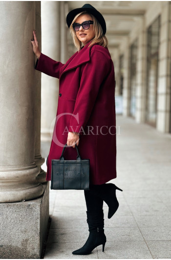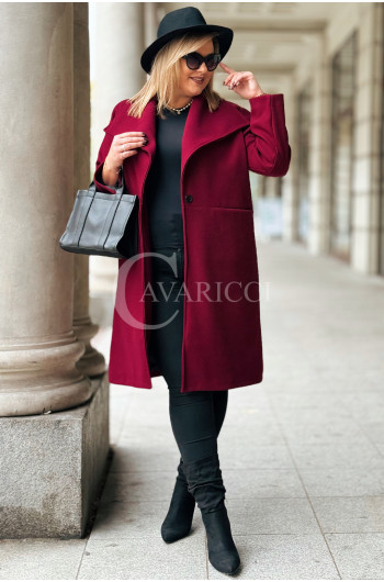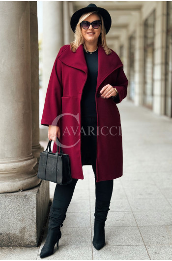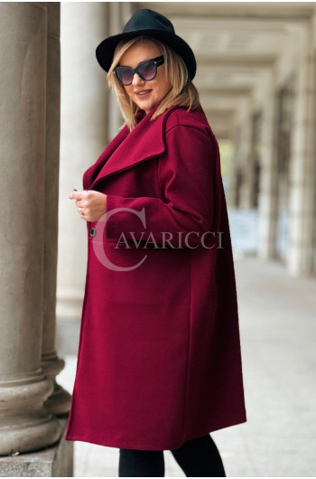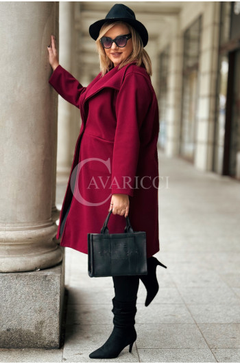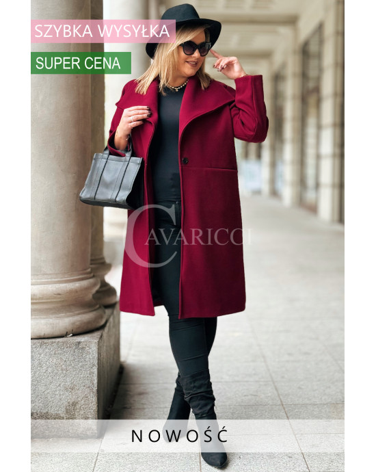 PRIMAVERA - ciepły, wygodny i absolutnie kobiecy płaszcz w kolorze bordowym