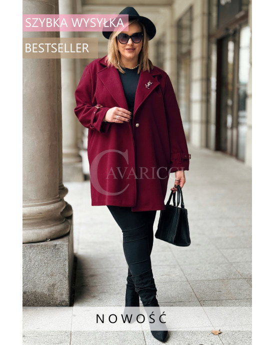 PANDORA – płaszcz, który zachwyca detalem BROSZKA W ZESTAWIE kolor bordowym