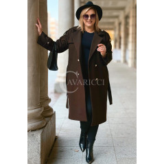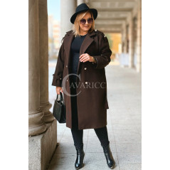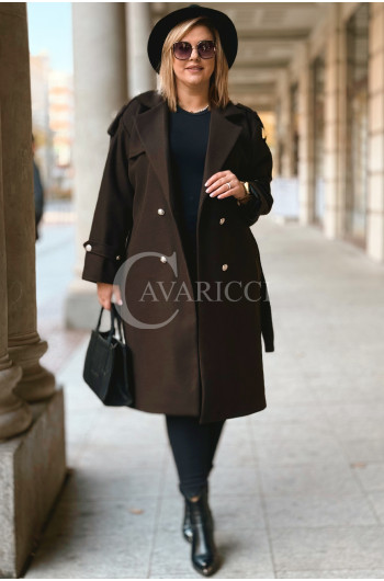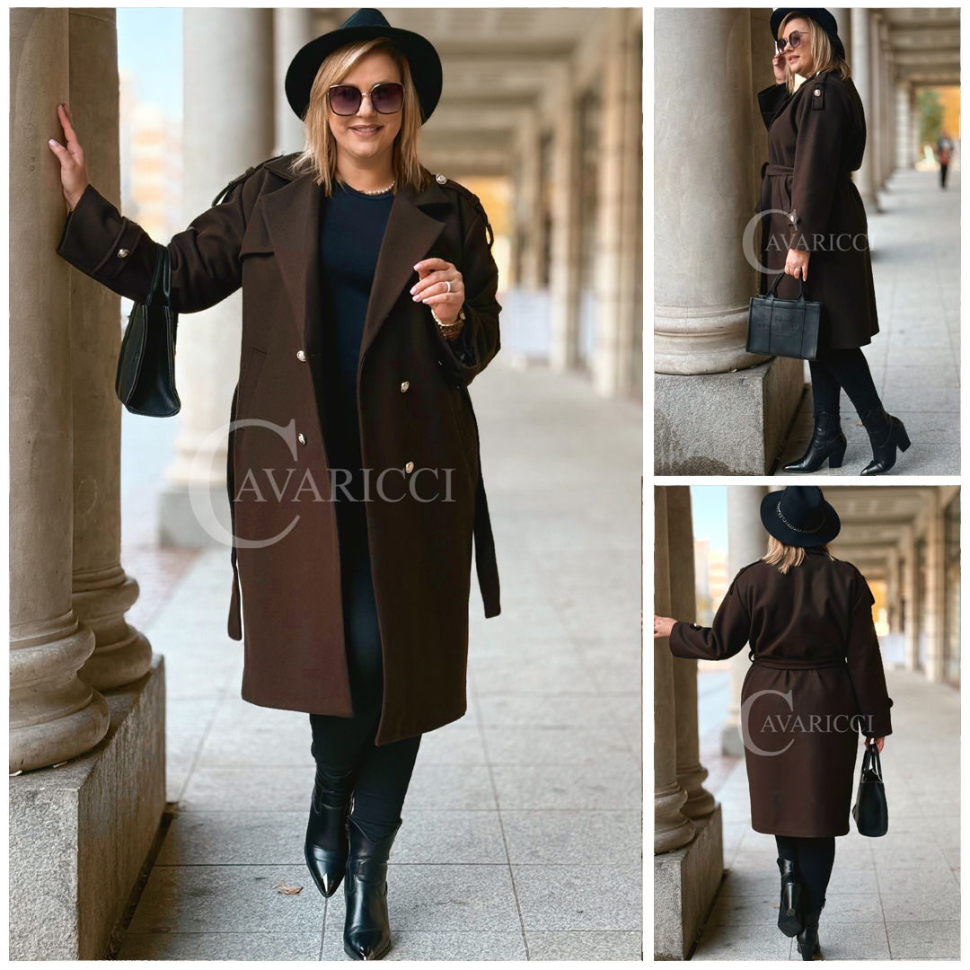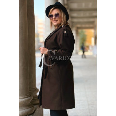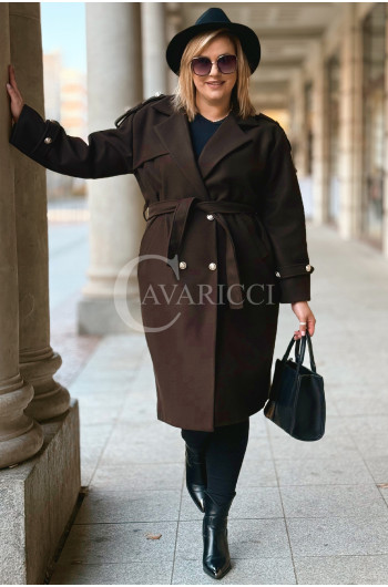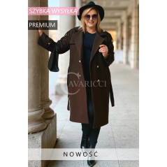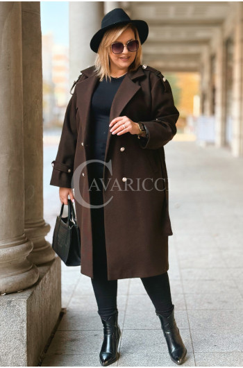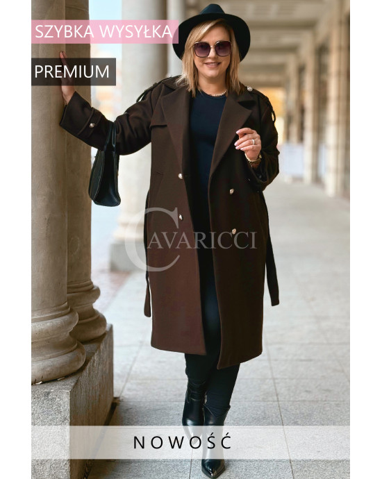 VIEVIENNE - Elegancki płaszcz z ozdobnymi pagonami i guzikami w kolorze brązowym