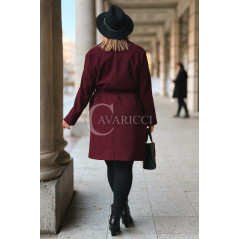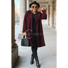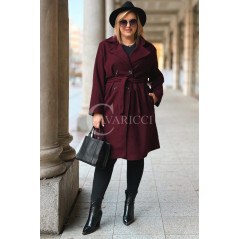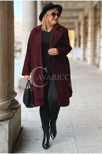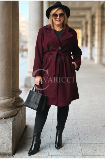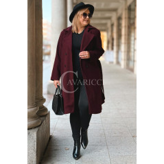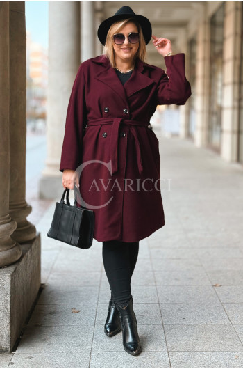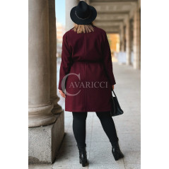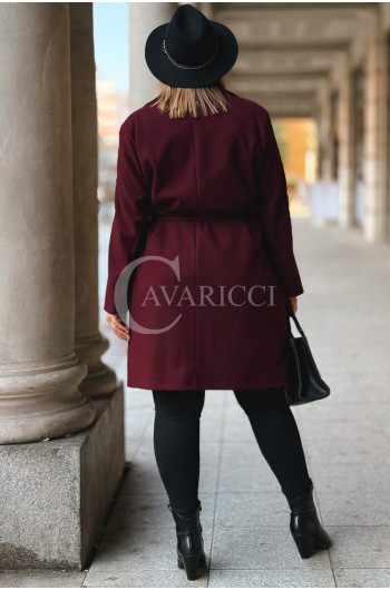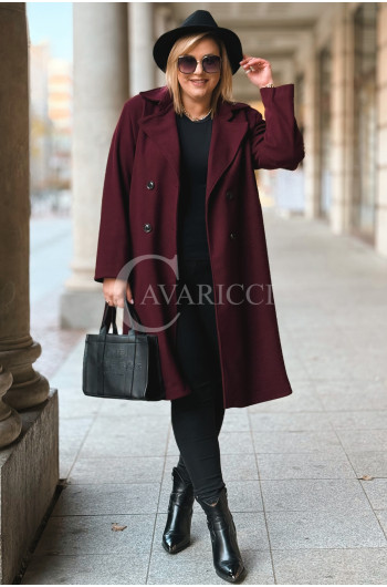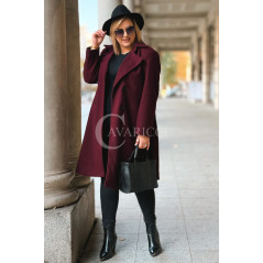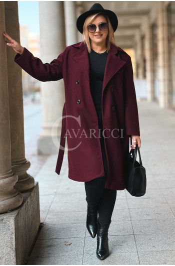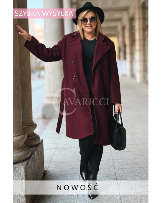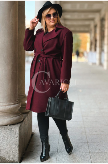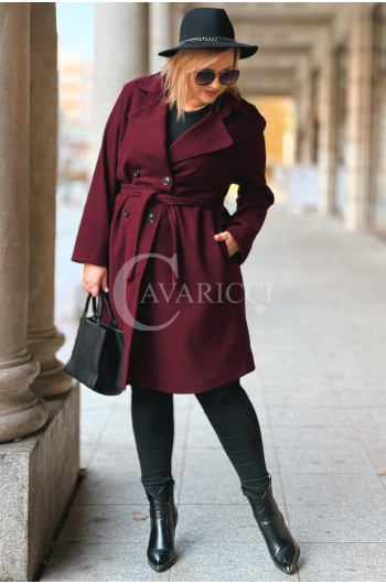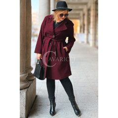 ZANETTE - Klasyczny płaszcz z guzikami i paskiem na podszewce w kolorze bordowym