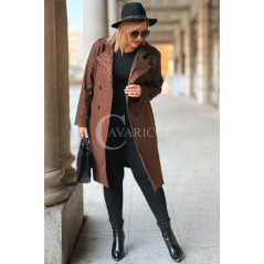 FELICIA - Luksusowy zachwycający płaszcz w modny wzór na podszewce w kolorze brązowym