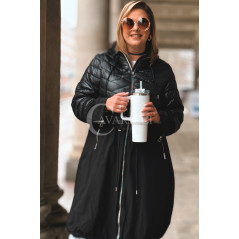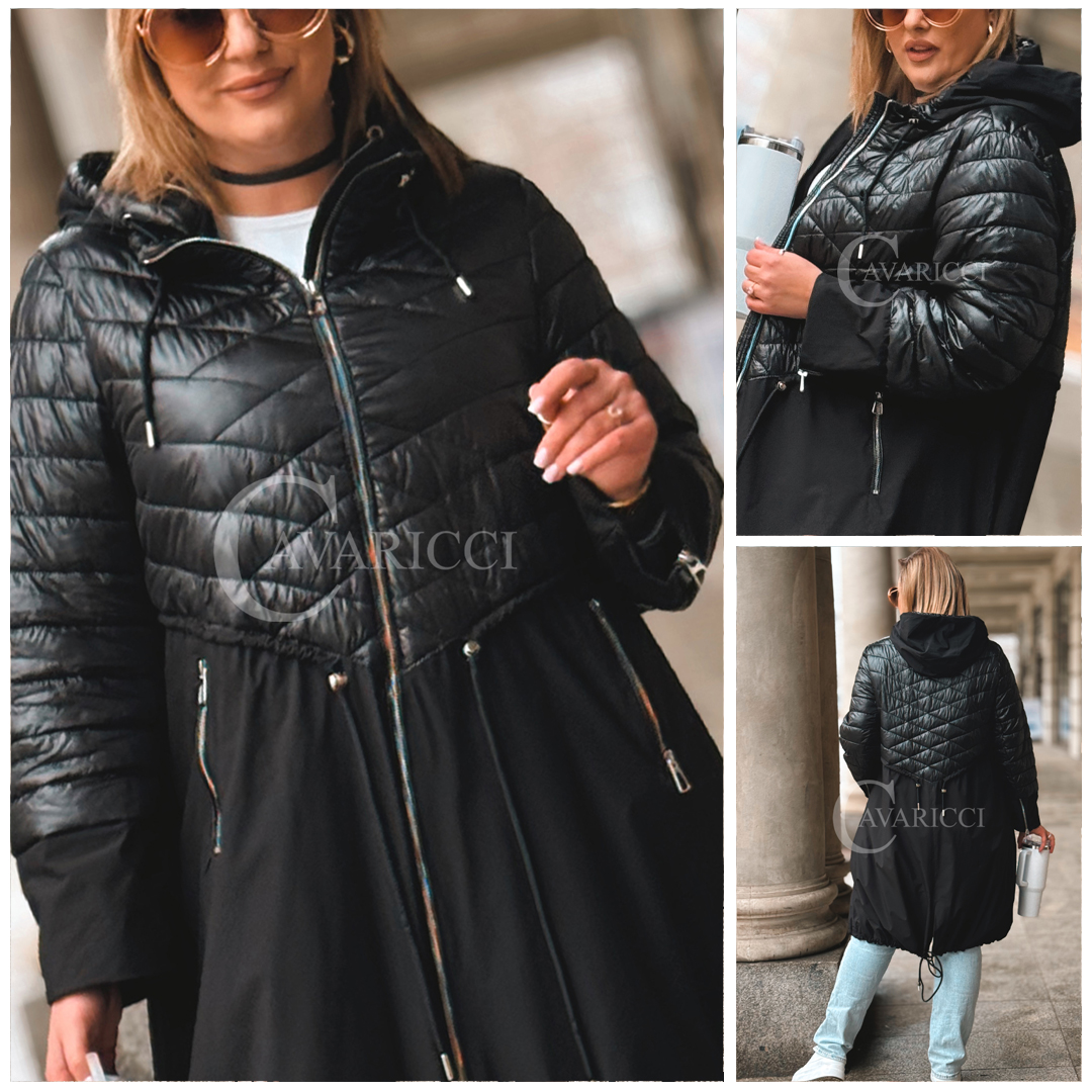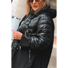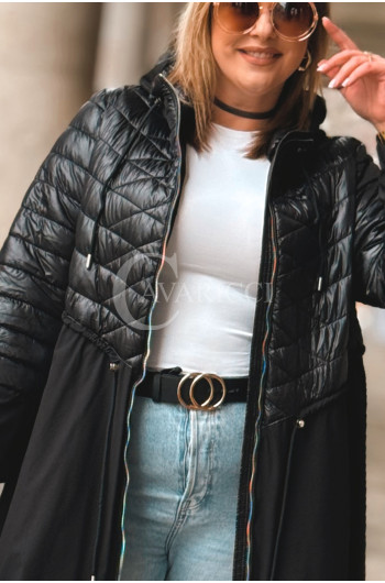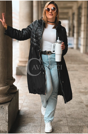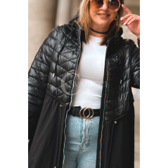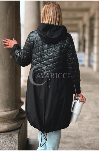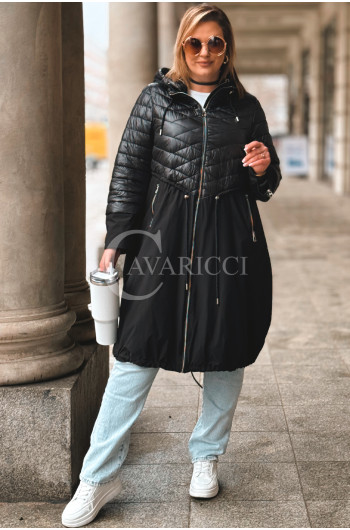 VELA - Wiosenna kurteczka z kapturem i ściągaczami w kolorze czarnym