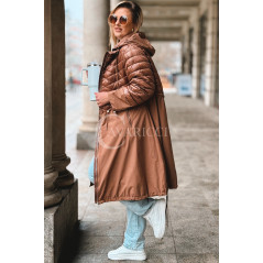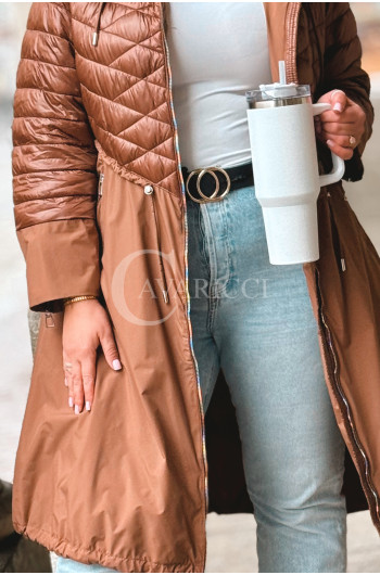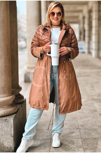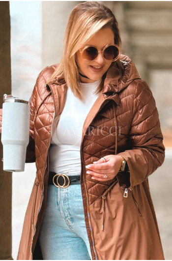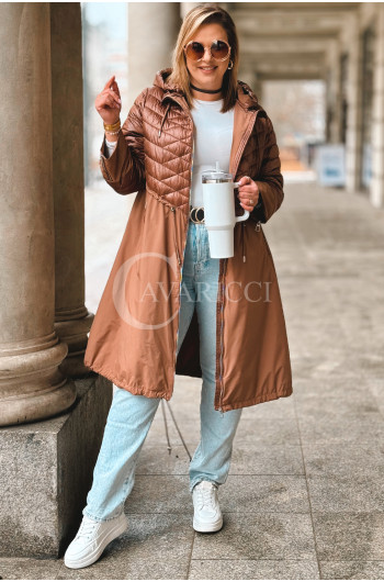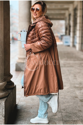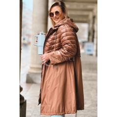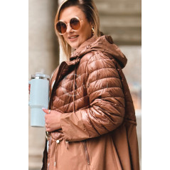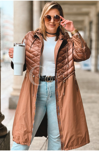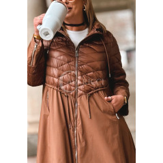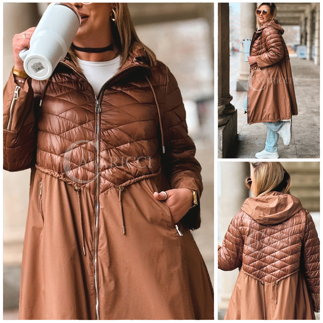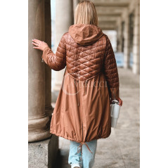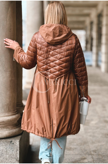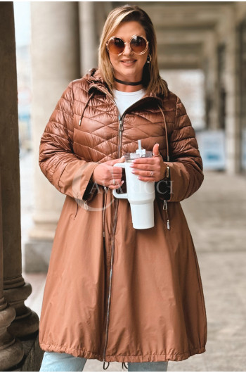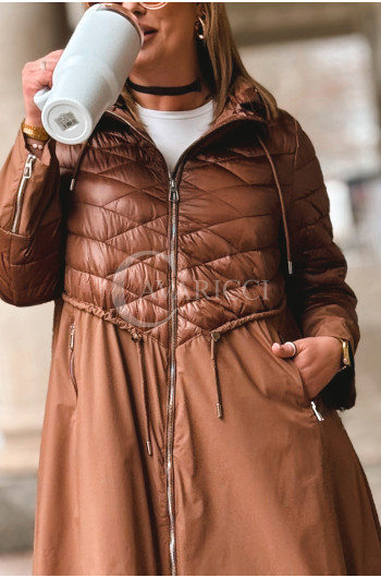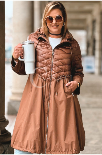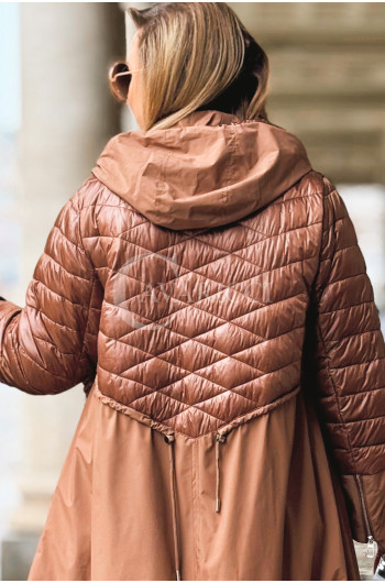 VELA - Wiosenna kurteczka z kapturem i ściągaczami w kolorze brązowym