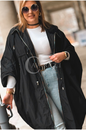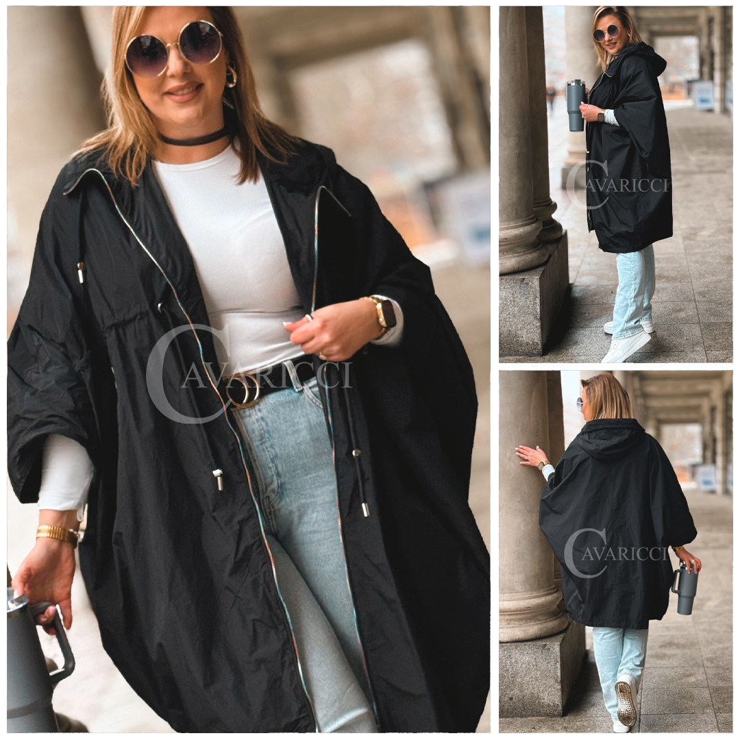 🧥 ARIA – PARKA WIATRÓWKA O KROJU NIETOPERZA TYPU PONCZO Z KAPTUREM