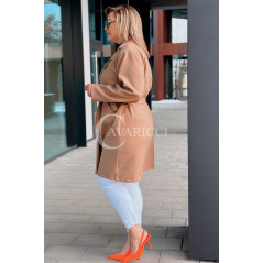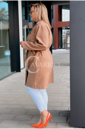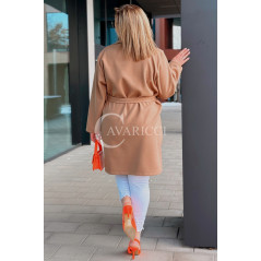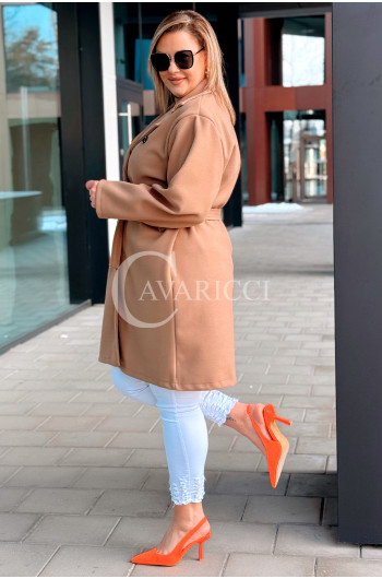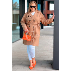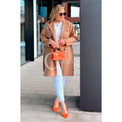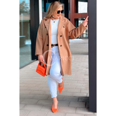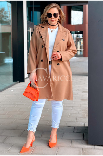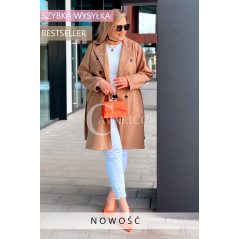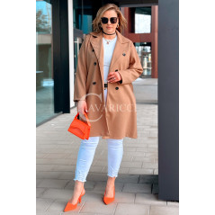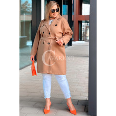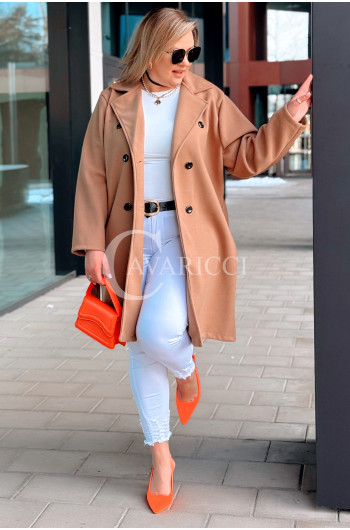 TRANI - Wiosenny lekki płaszczyk dwurzędowy z czarnymi guzikami w kolorze beżowym