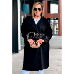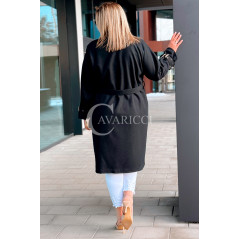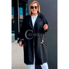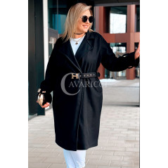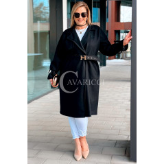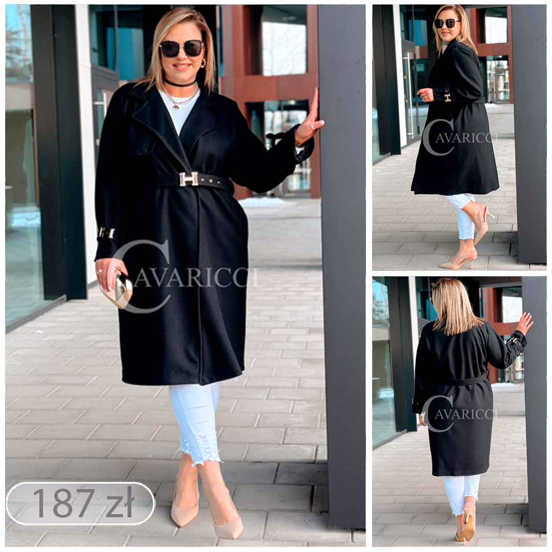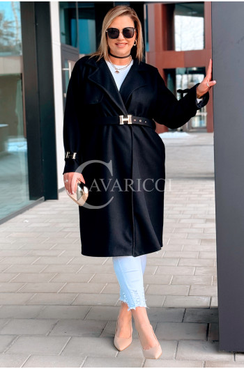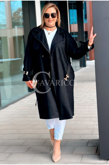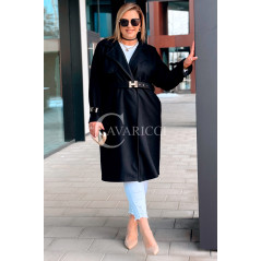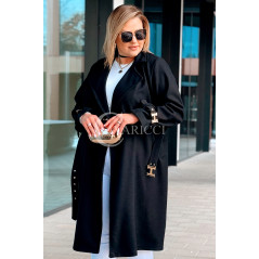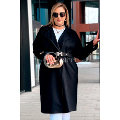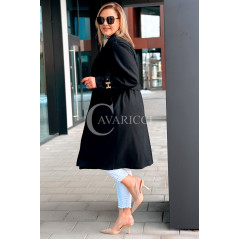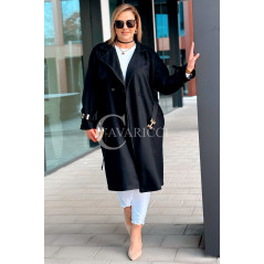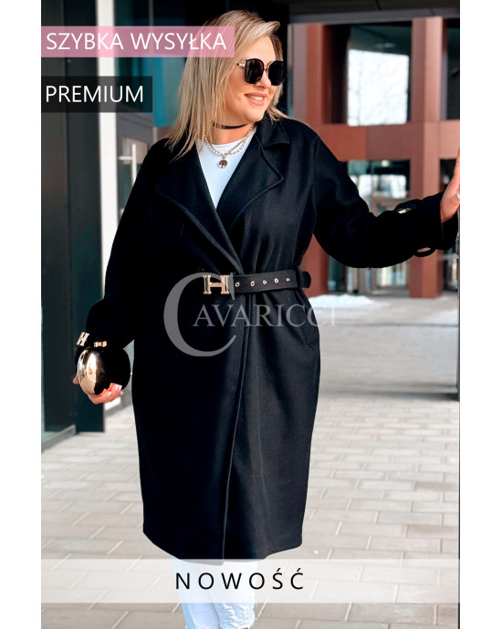 MONA - wiosenny płaszcz, z paskiem podkreślający sylwetkę w kolorze czarnym
