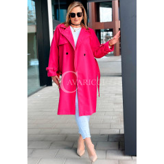 MONA - wiosenny płaszcz, z paskiem podkreślający sylwetkę w kolorze fuksji