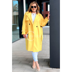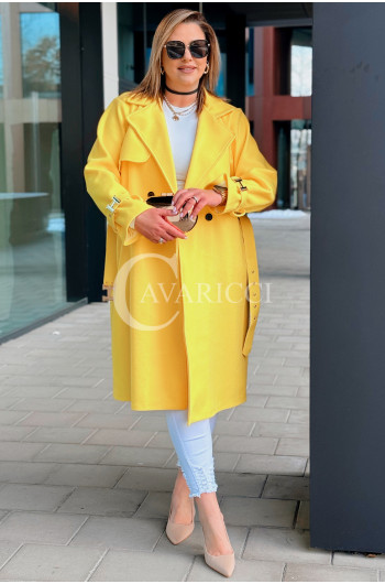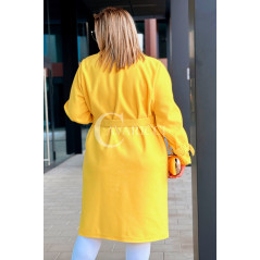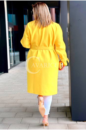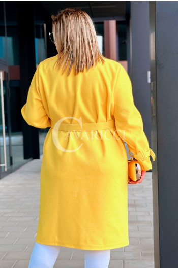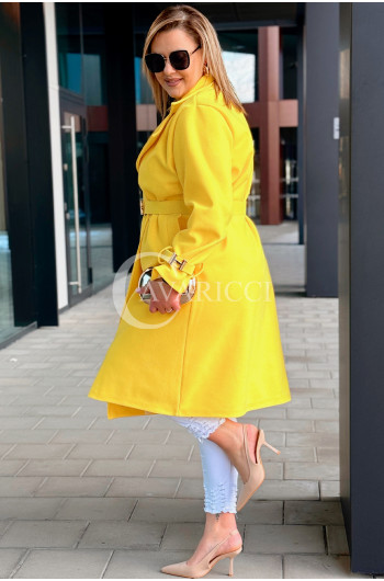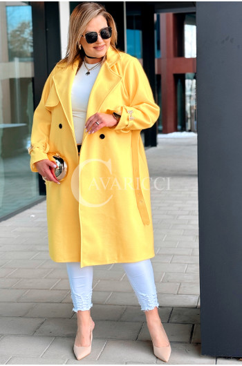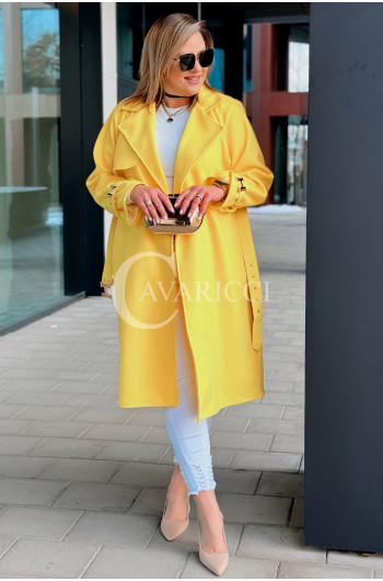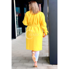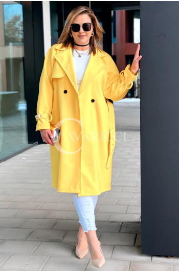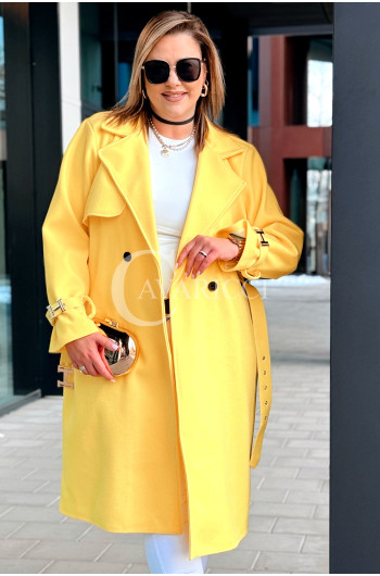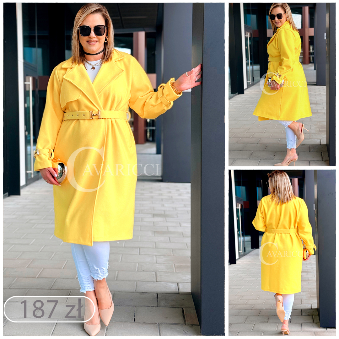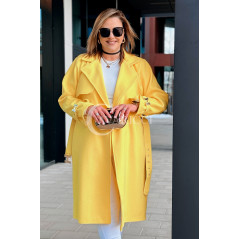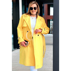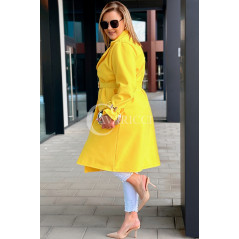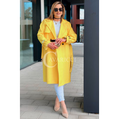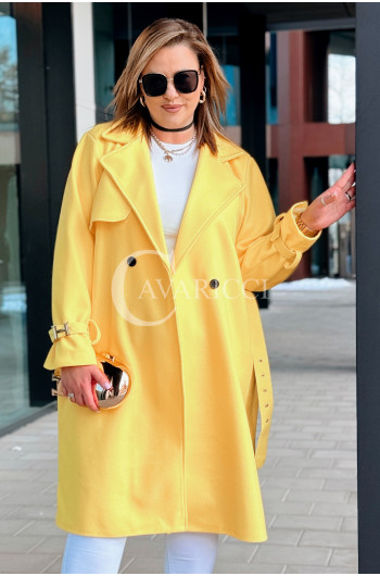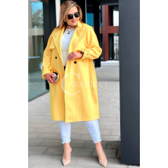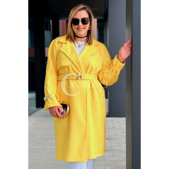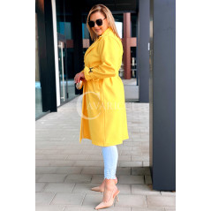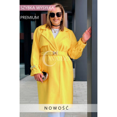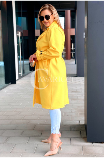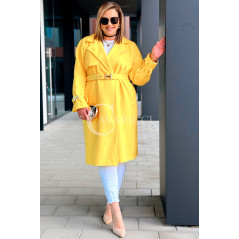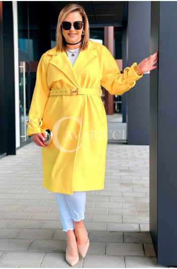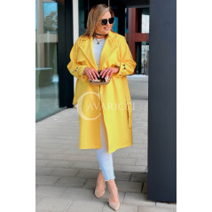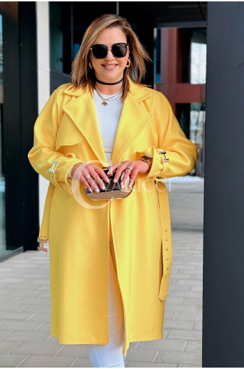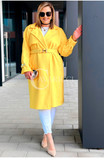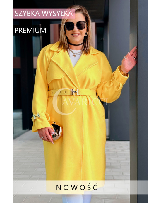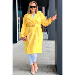 HERMESSA - wiosenny płaszcz, z paskiem podkreślający sylwetkę w kolorze żółtym