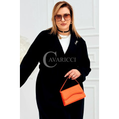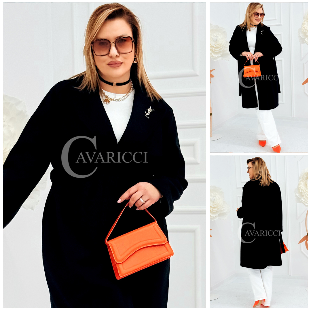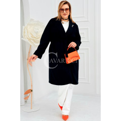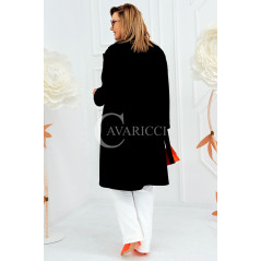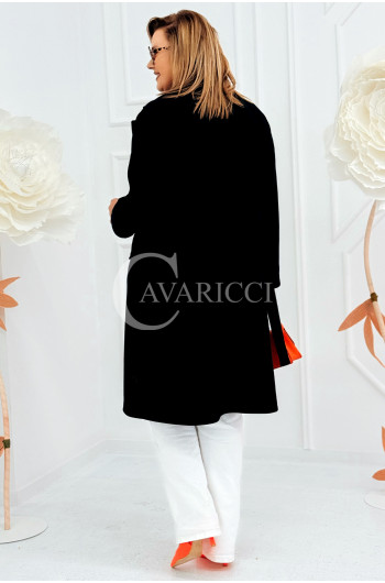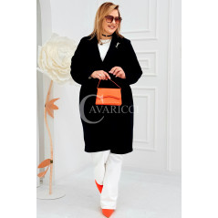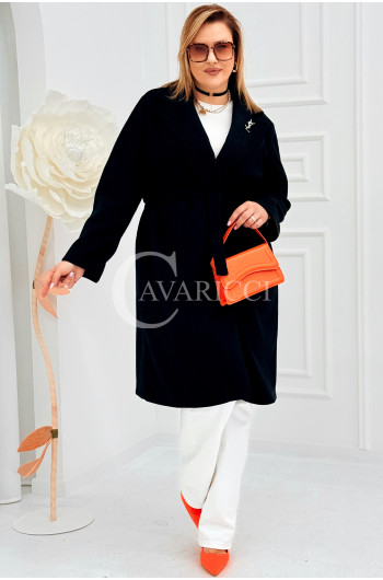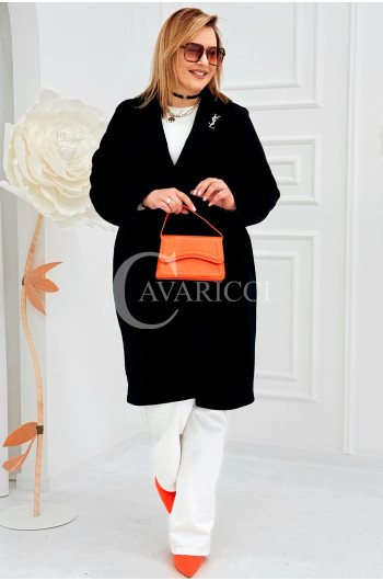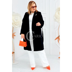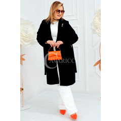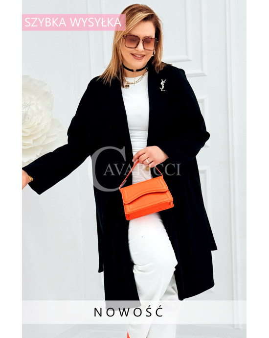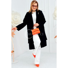 IRIS - Modny płaszcz wiosenny w kolorze czarnym z detalem premium broszką
