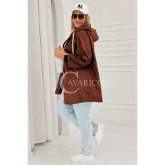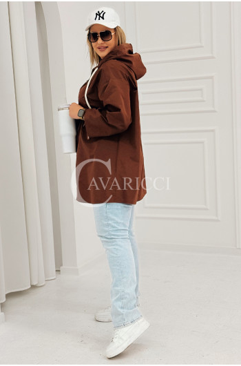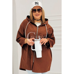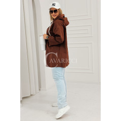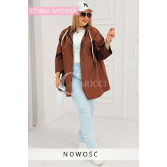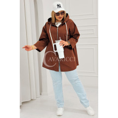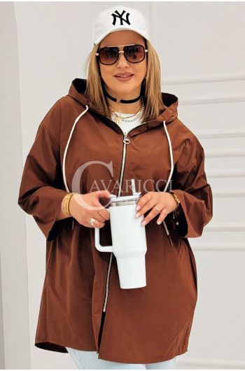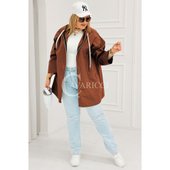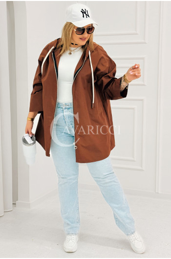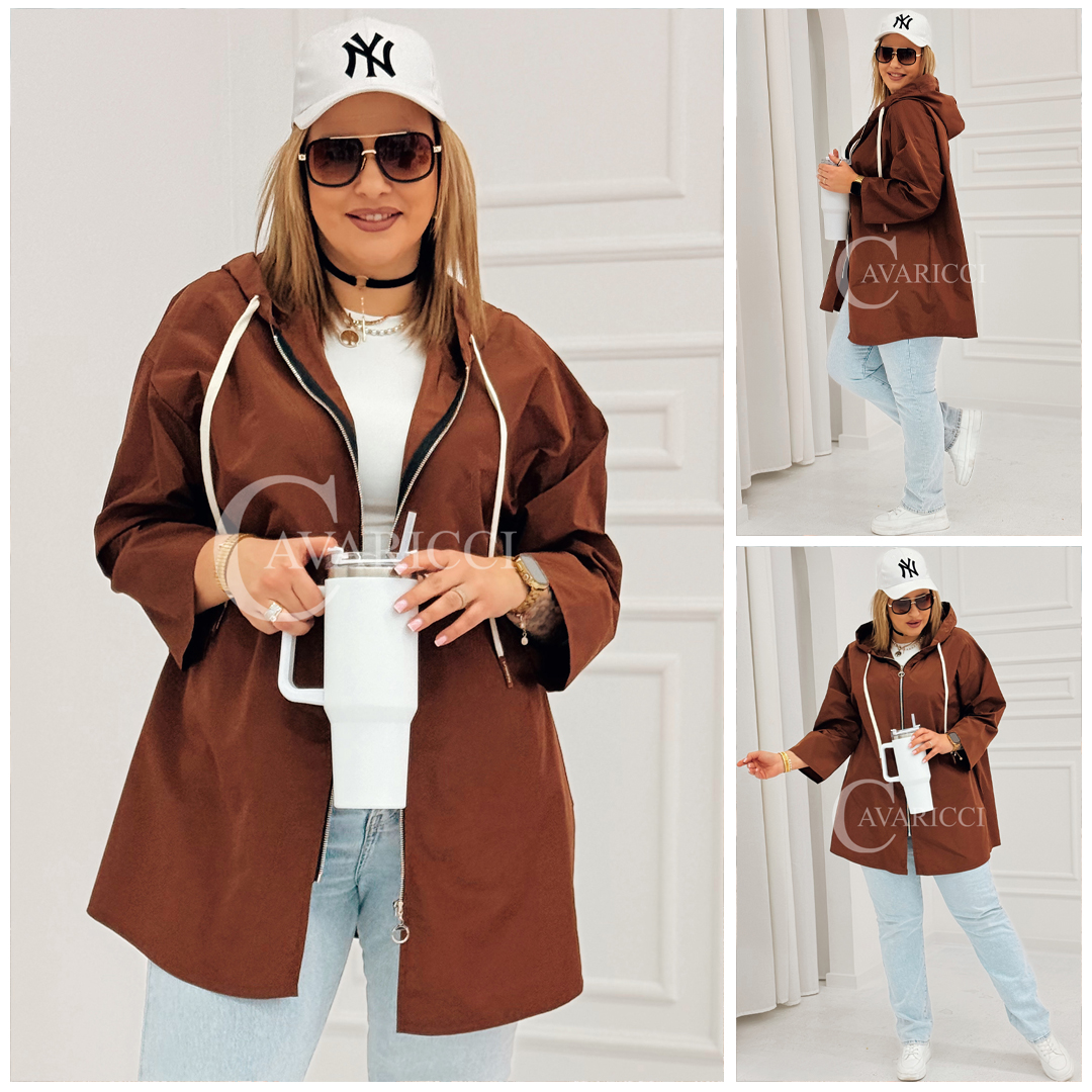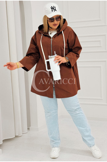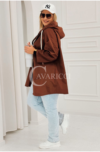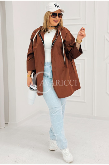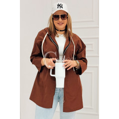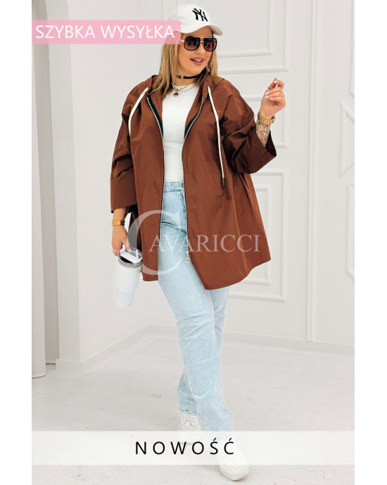 ALMA - Wiosenna krótka wiatrówka o prostym kroju z kapturem w kolorze brązowym