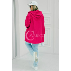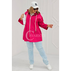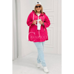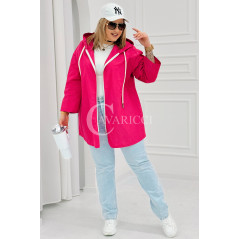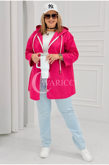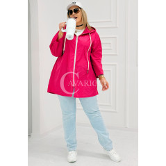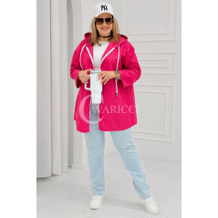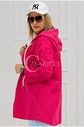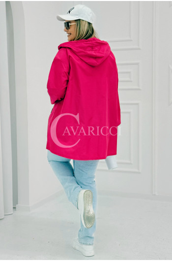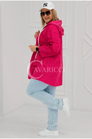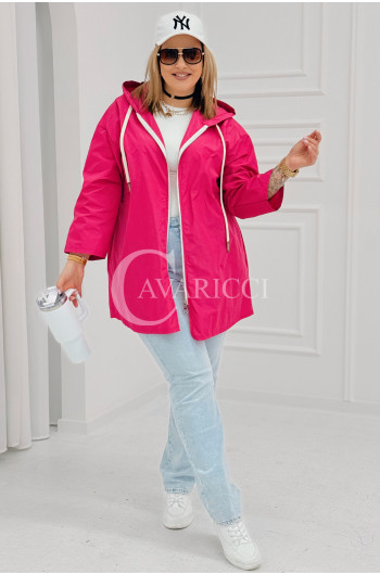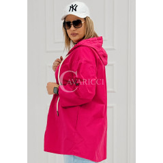 ALMA - Wiosenna krótka wiatrówka o prostym kroju z kapturem w kolorze fuksji