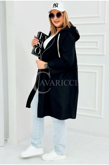 ALMIRA - Wiosenna wiatrówka o prostym kroju z kapturem i pelerynką w kolorze czarnym