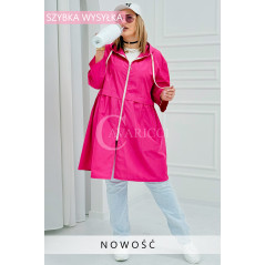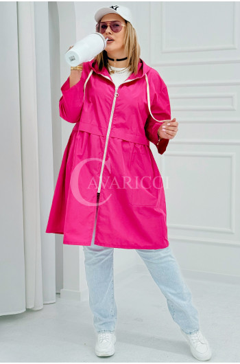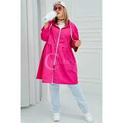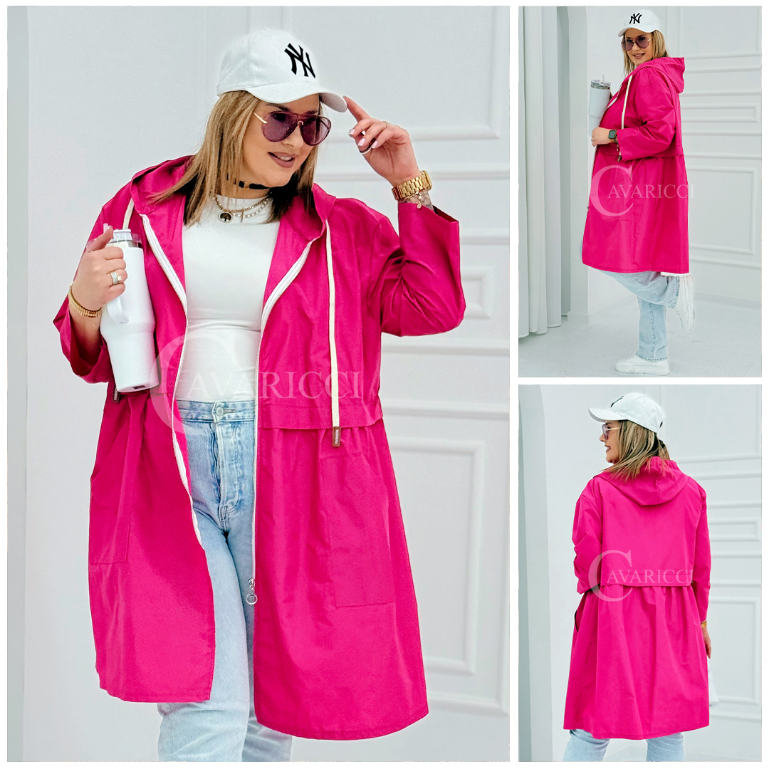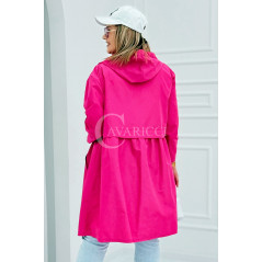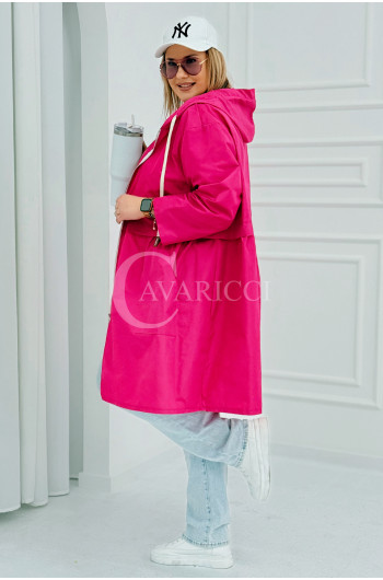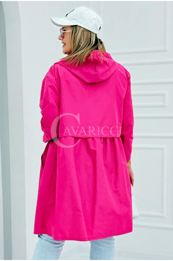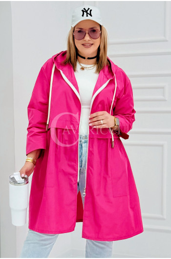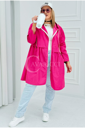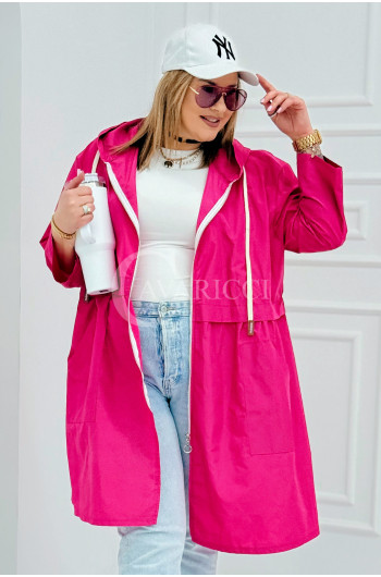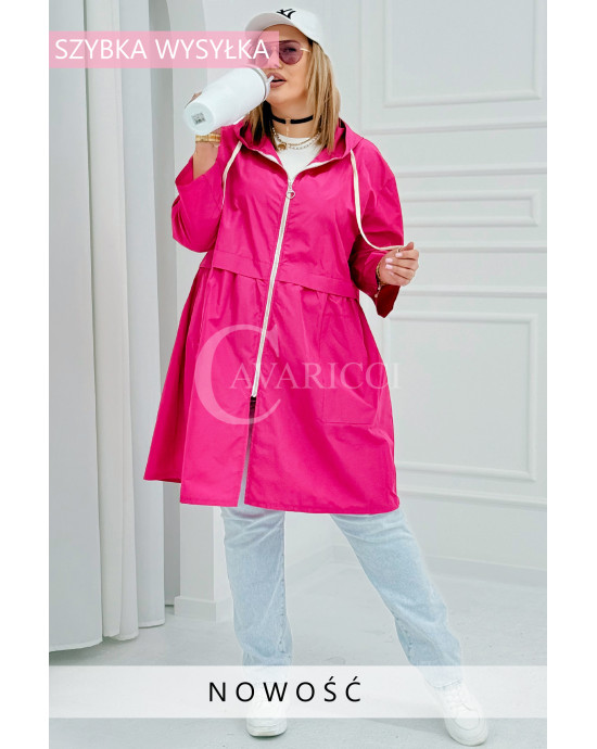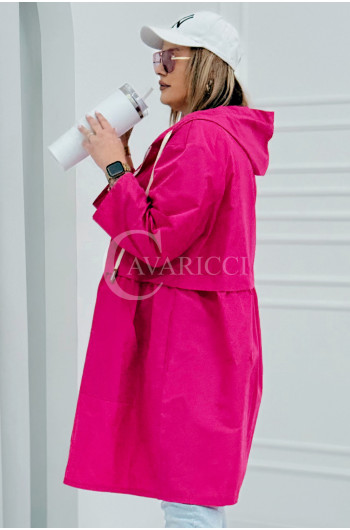 ALMIRA - Wiosenna wiatrówka o prostym kroju z kapturem i pelerynką w kolorze fuksji