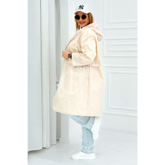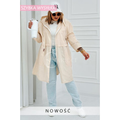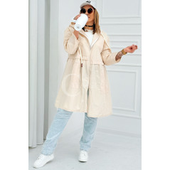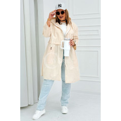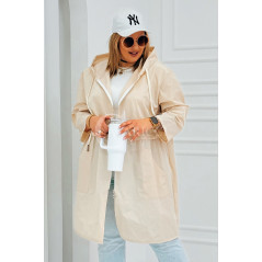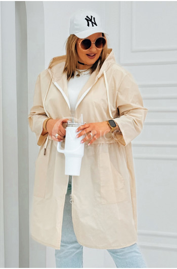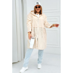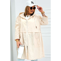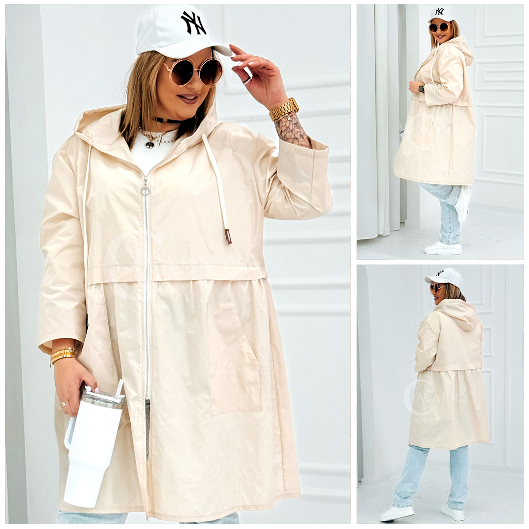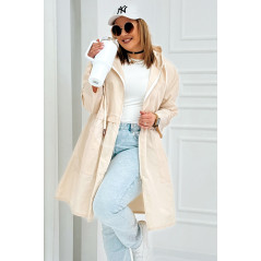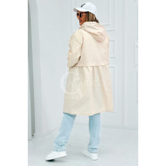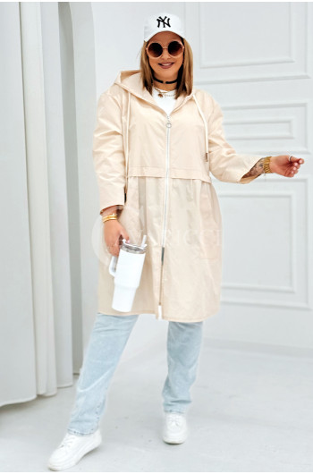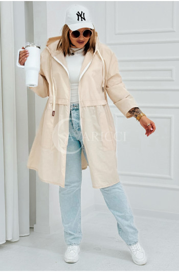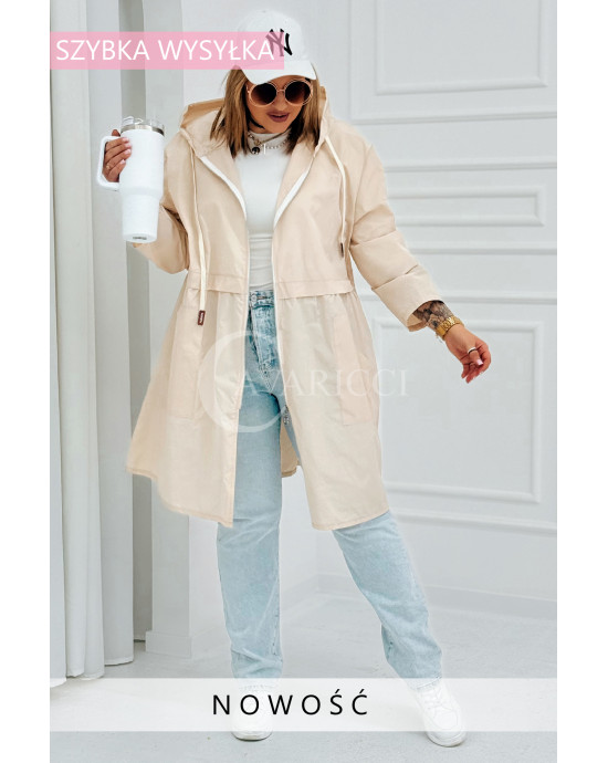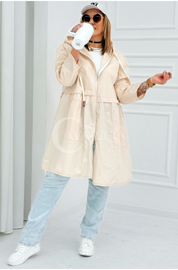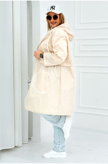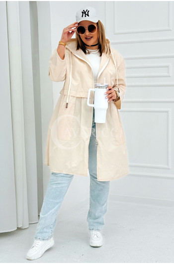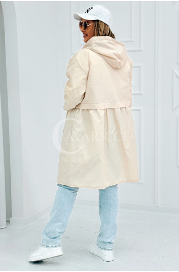 ALMIRA - Wiosenna wiatrówka o prostym kroju z kapturem i pelerynką w kolorze beżowym