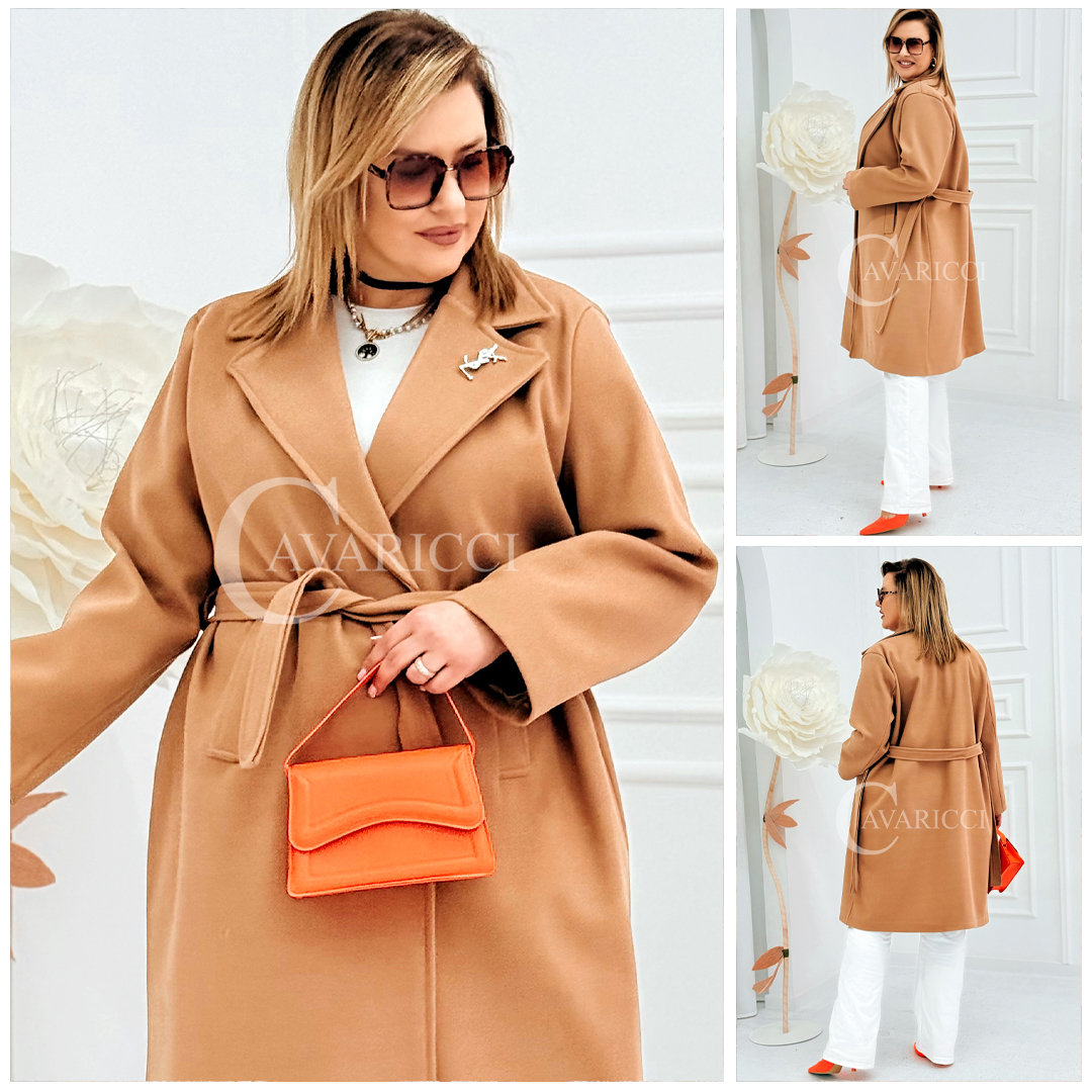 🧥 IRIS – WIOSENNY PŁASZCZ Z PASKIEM I OZDOBNĄ BROSZKĄ
